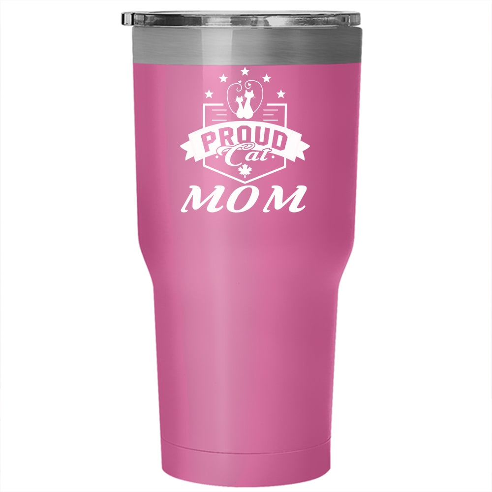 Proud Cat Mom Tumbler 30 oz Stainless Steel, Cute Gift For Cat Owner Travel Mug