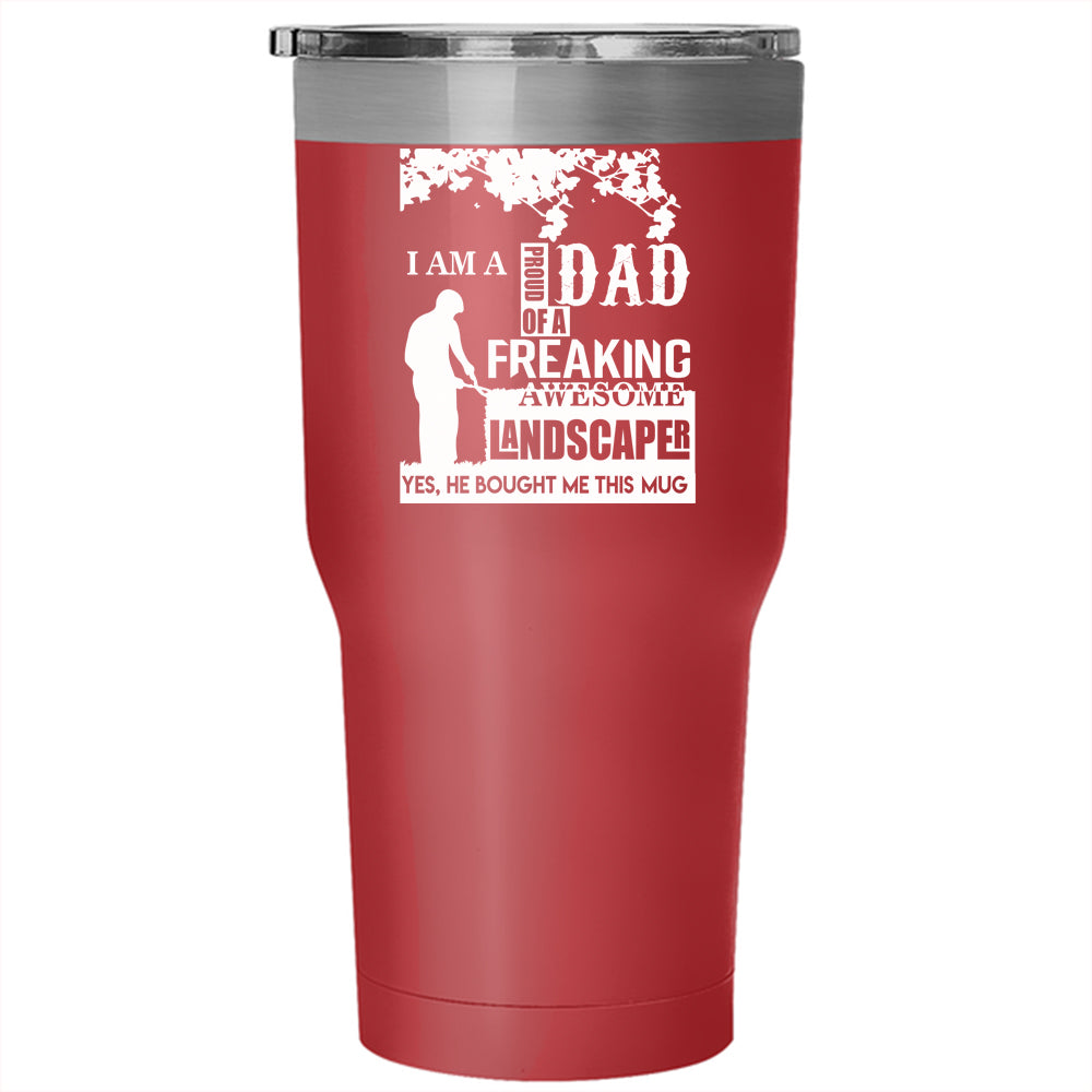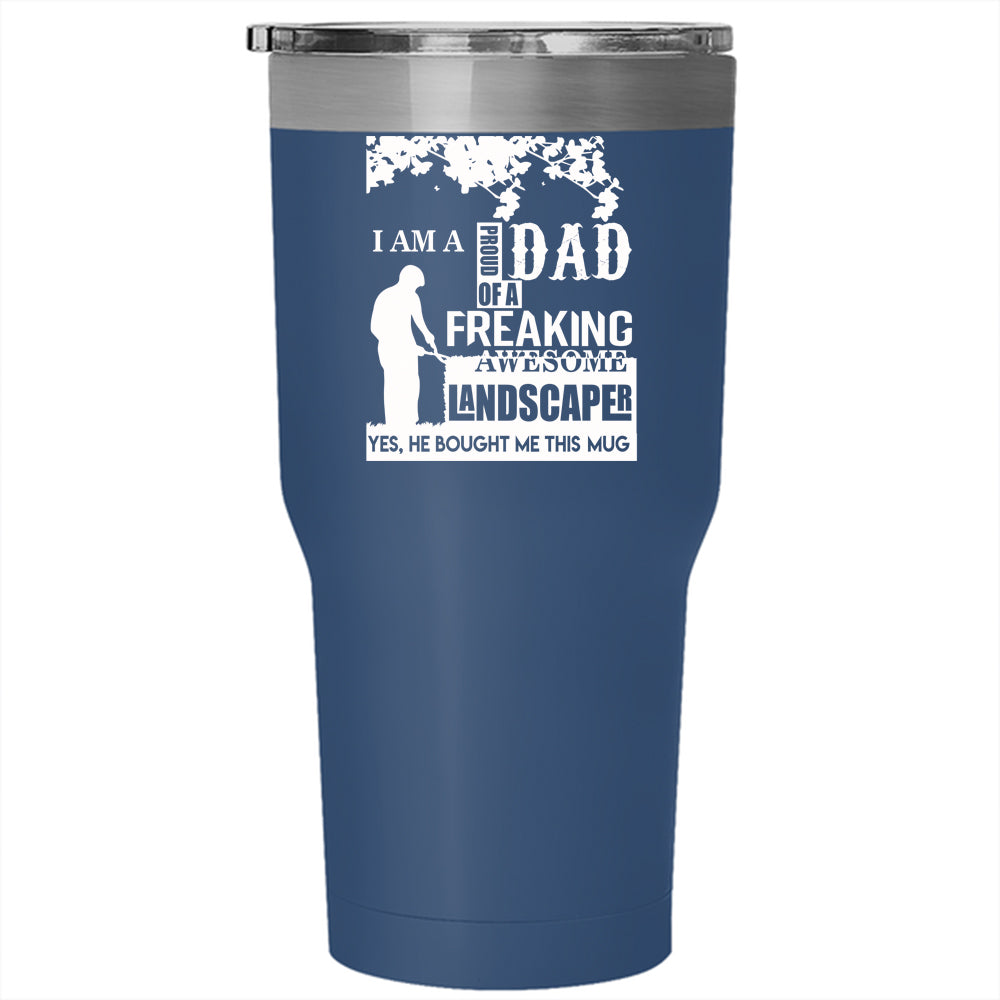 Proud Dad Of An Awesome Landscaper Tumbler 30 oz Stainless Steel, Cool Dad Travel Mug