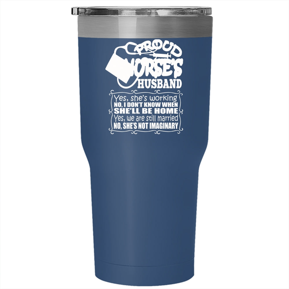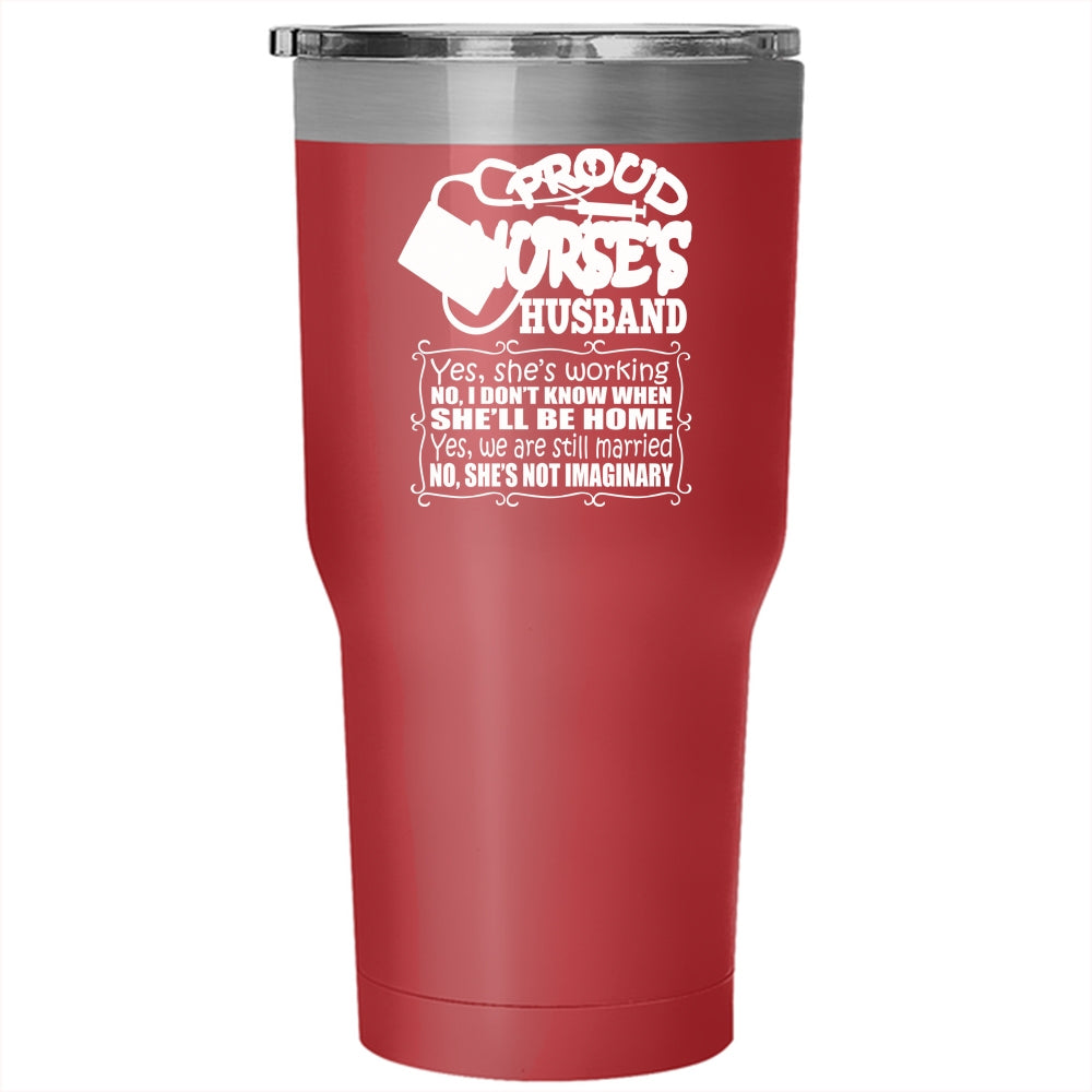 Proud Nurse's Husband Tumbler 30 oz Stainless Steel, Cool Just Married Travel Mug