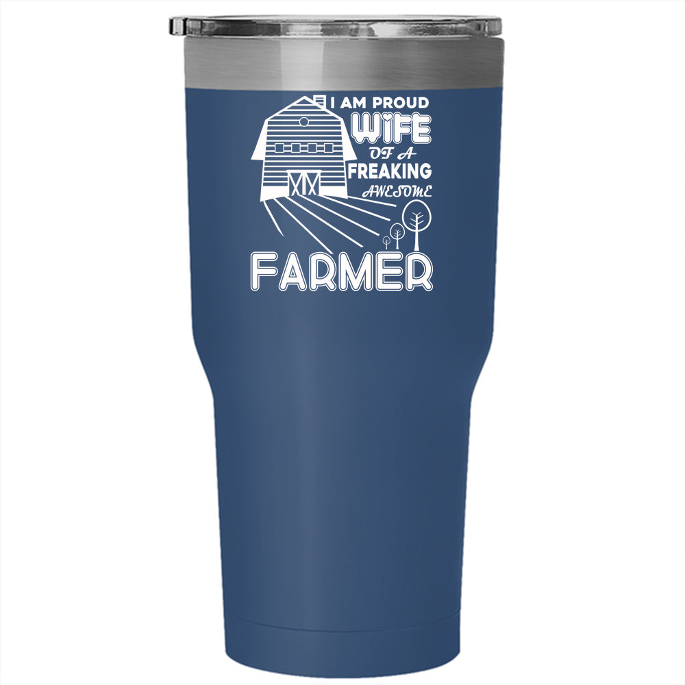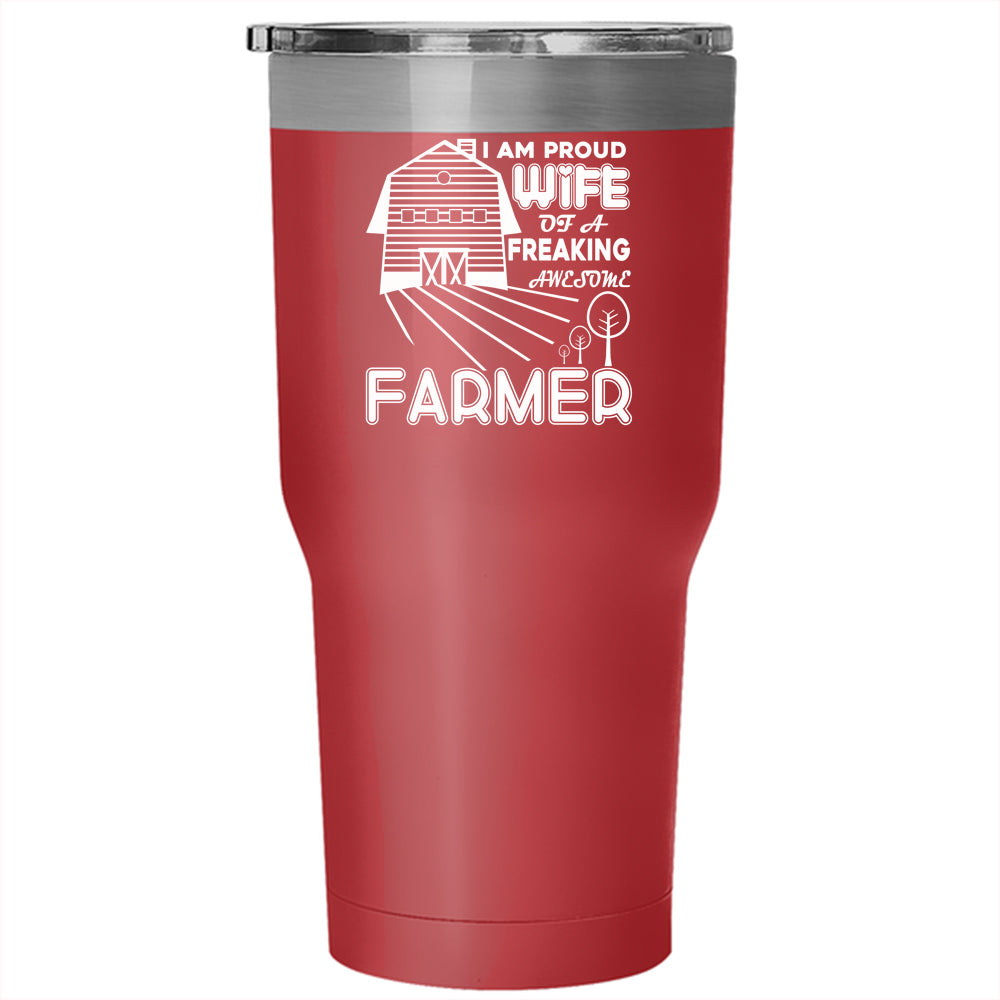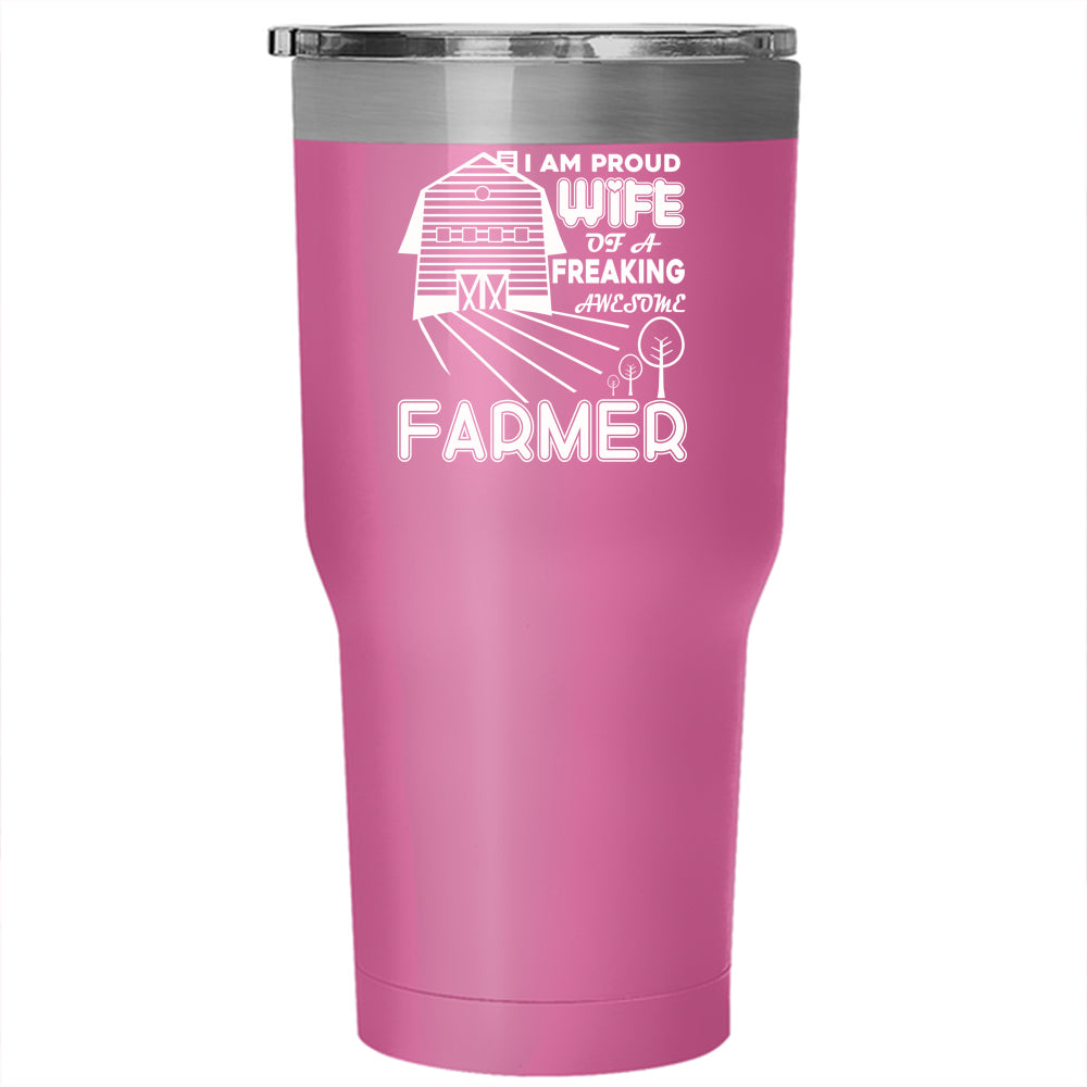 Proud Wife Of A Freaking Awesome Farmer Tumbler 30 oz Stainless Steel, Wife Travel Mug