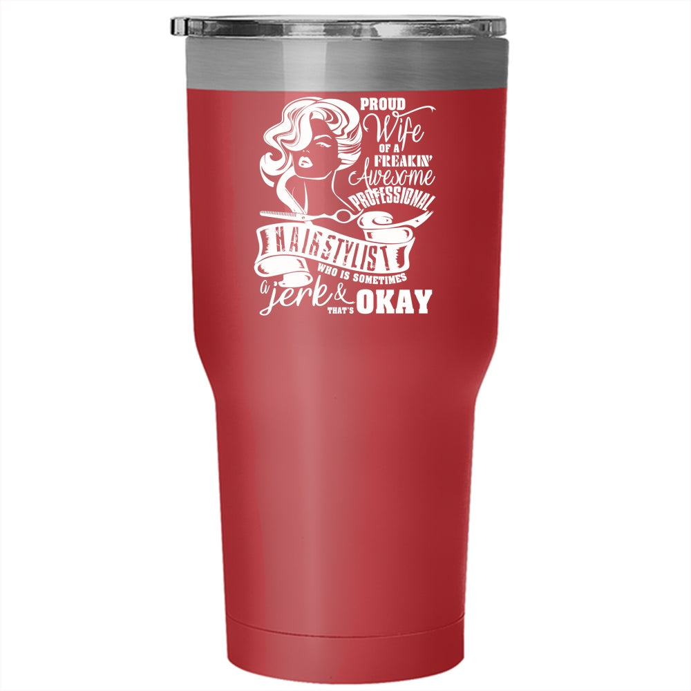 Proud Wife Of A Proffessional Hairstylist Tumbler 30 oz Stainless Steel, Cute Wife Travel Mug