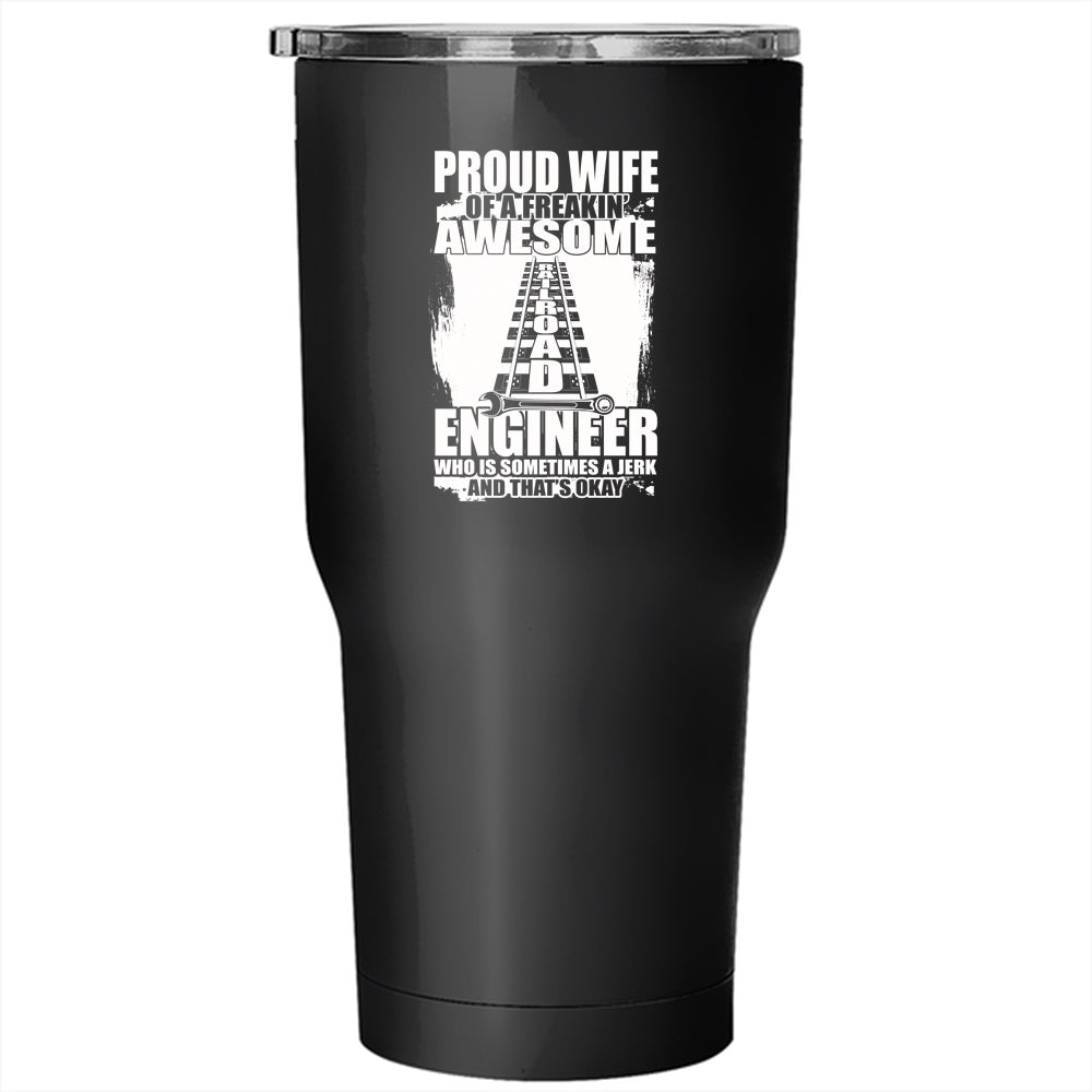 Proud Wife Of An Railroad Engineer Tumbler 30 oz Stainless Steel, Cool Married Travel Mug