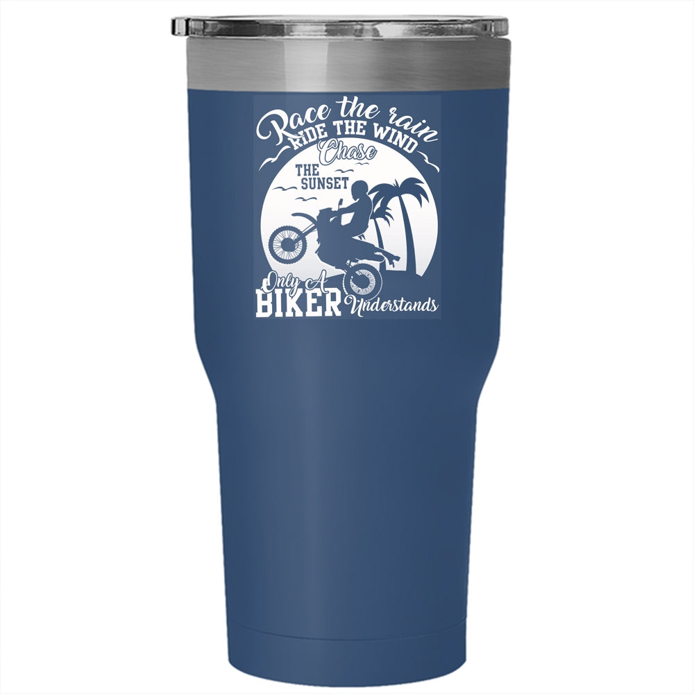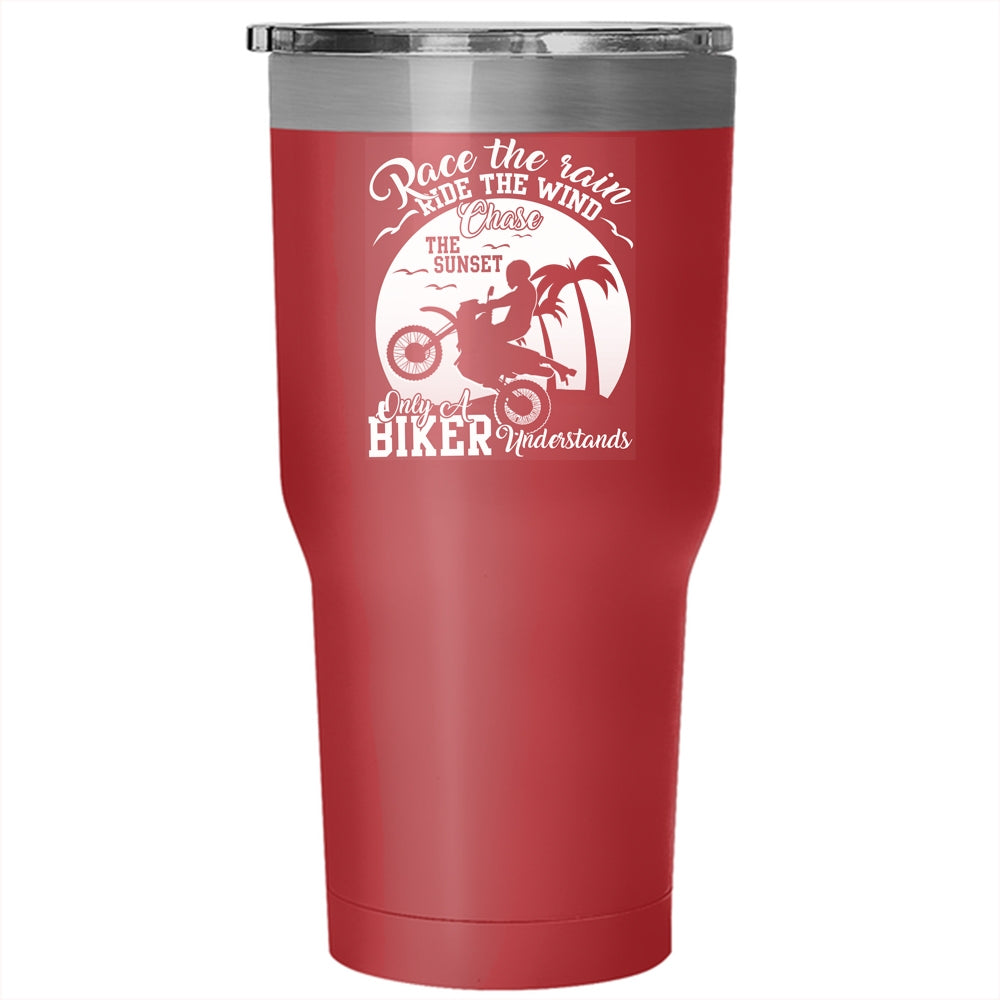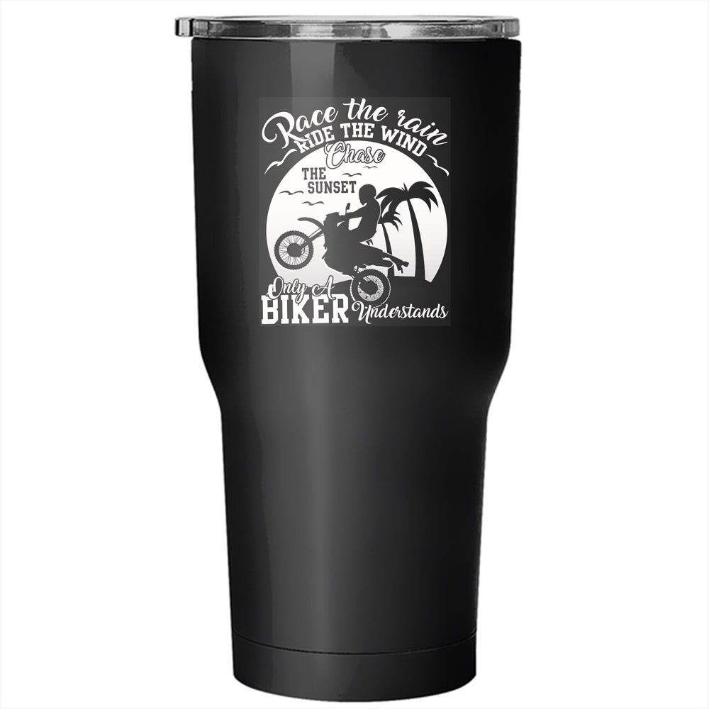 Race The Rain Ride The Wind Tumbler 30 oz Stainless Steel, Only A Biker Understand Travel Mug