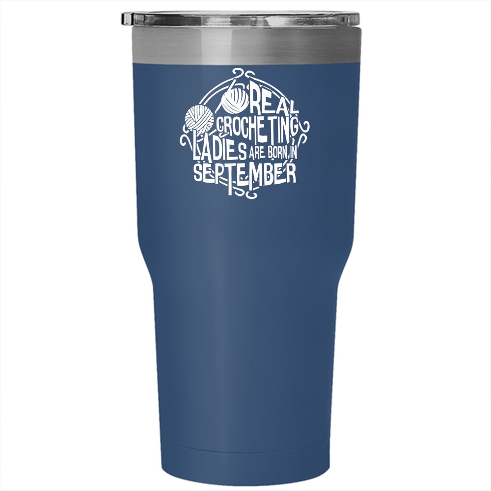 Real Crocheting Ladies Are Born In September Tumbler 30 oz Stainless Steel, Cool Lady Travel Mug