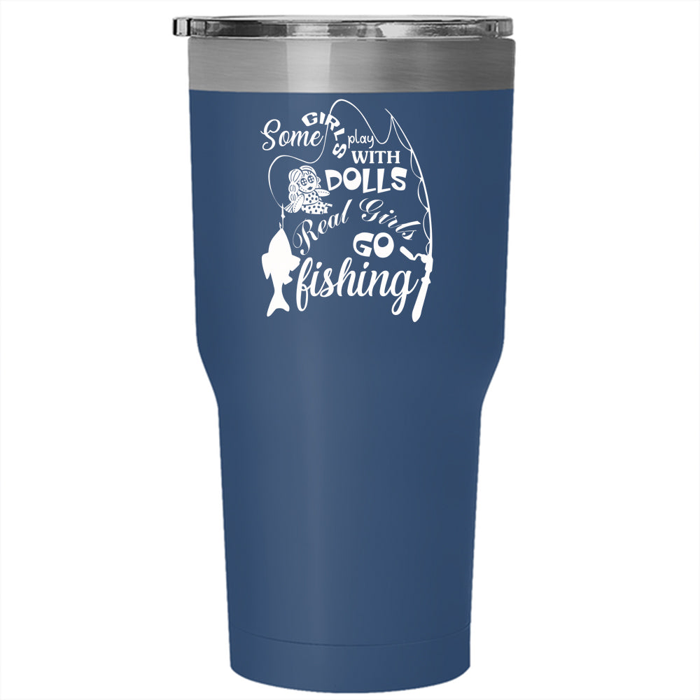 Real Girls Go Fishing Tumbler 30 oz Stainless Steel, Cool Girls Travel Mug