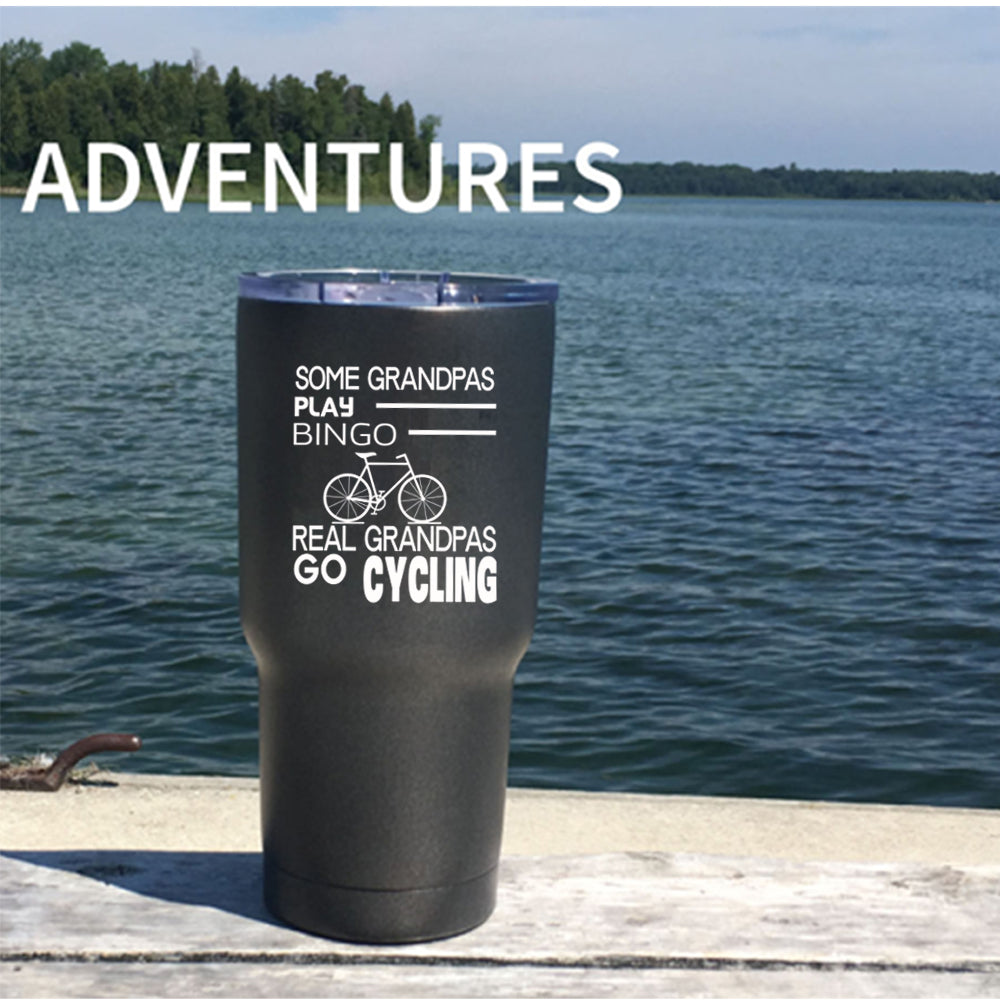 Real Grandpas Go Cycling Tumbler 30 oz Stainless Steel, Gift For Grandpa Travel Mug