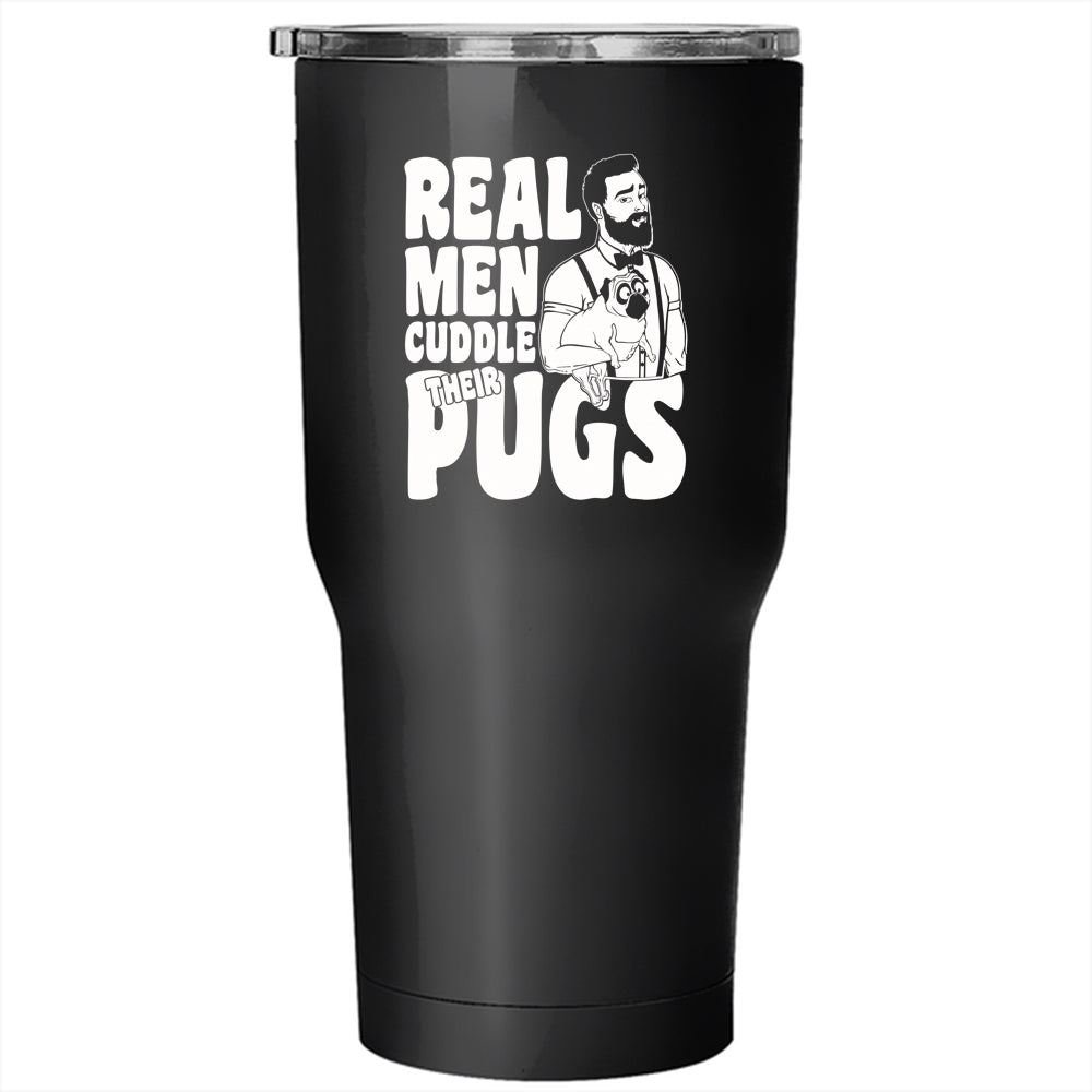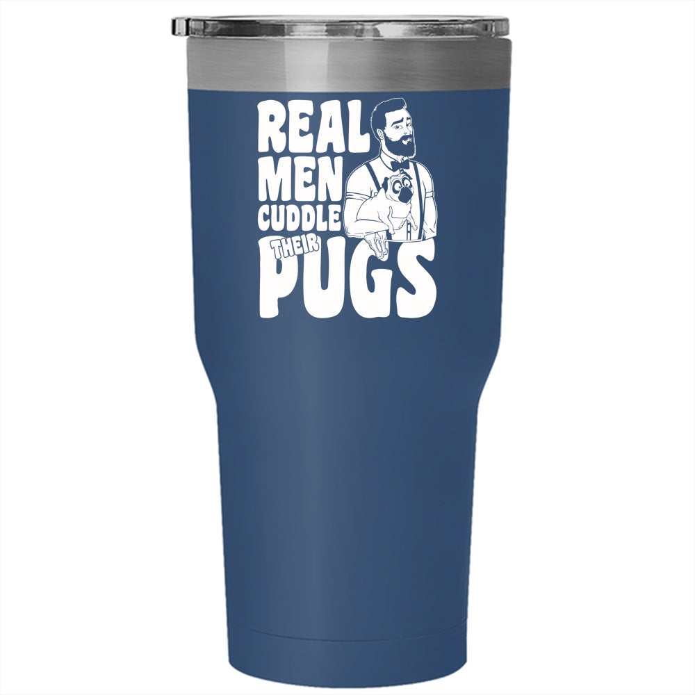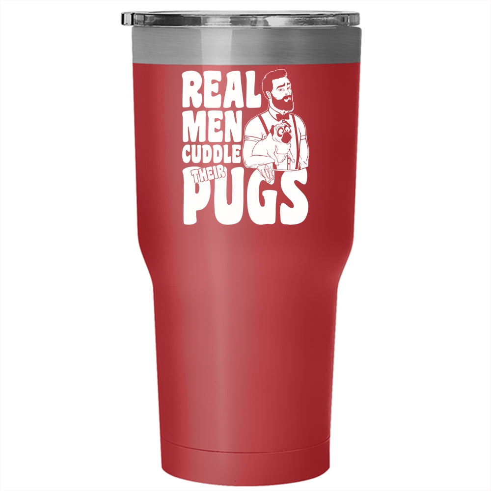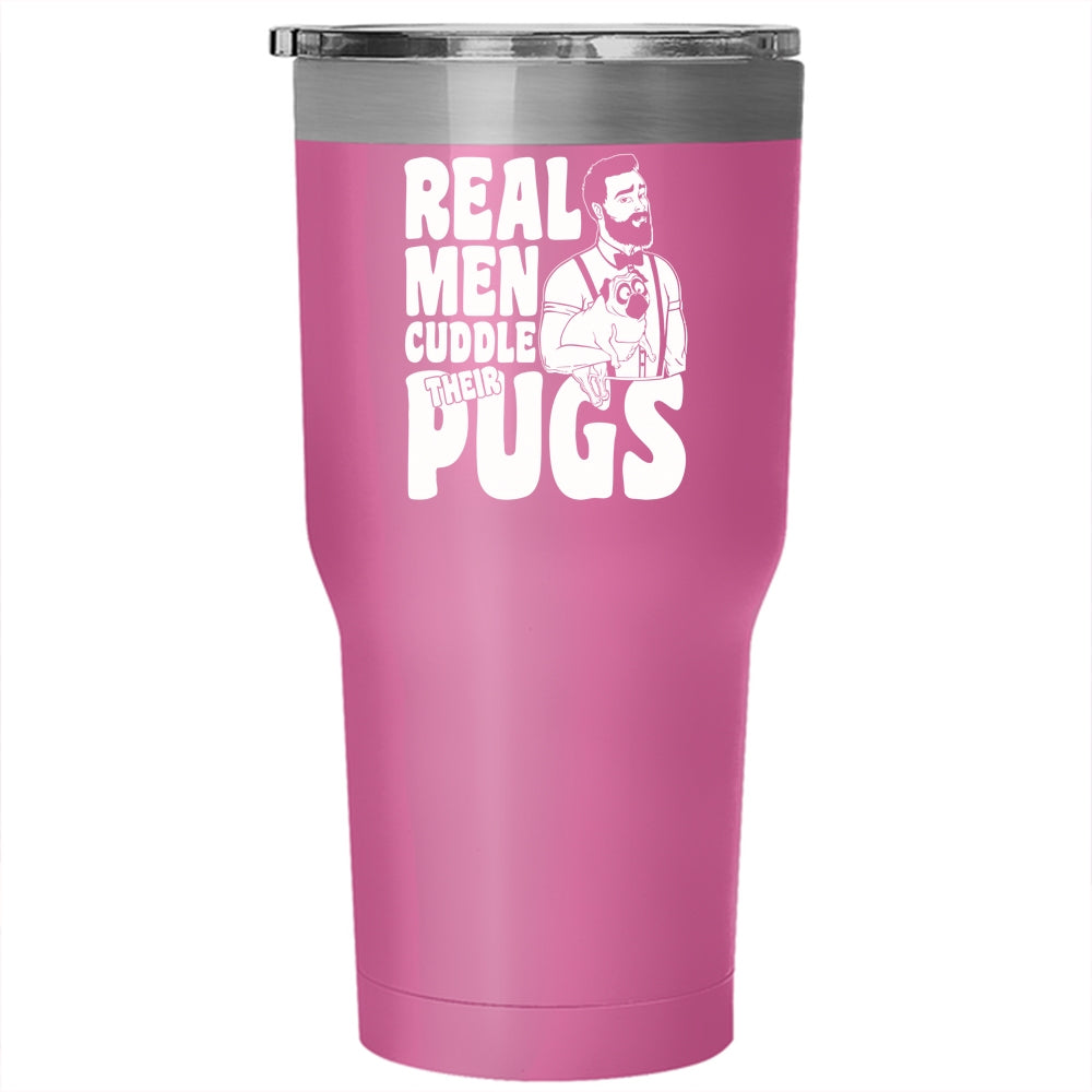 Real Men Cuddle Their Pugs Tumbler 30 oz Stainless Steel, Funny Pug Lover Travel Mug