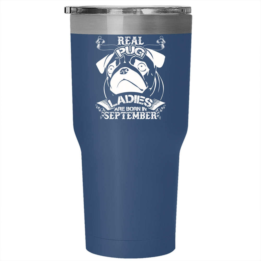 Real Pug Ladies Tumbler 30 oz Stainless Steel, Born In September Travel Mug