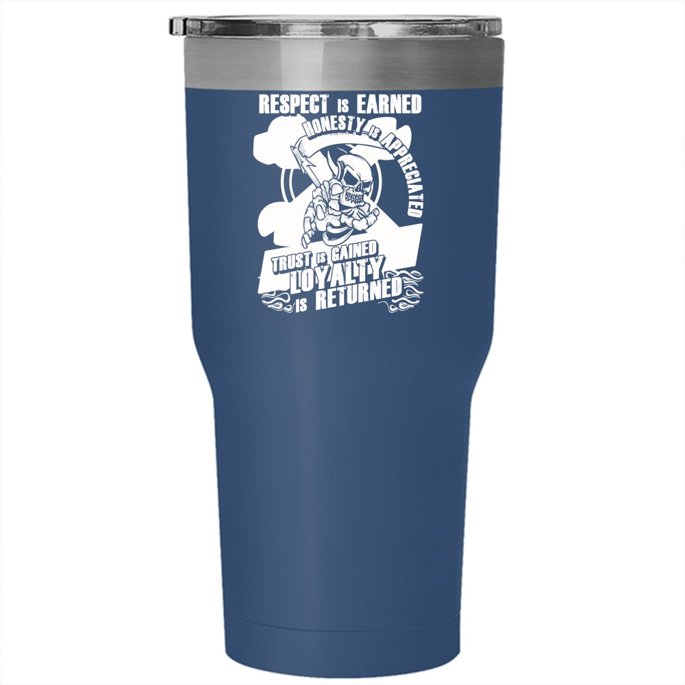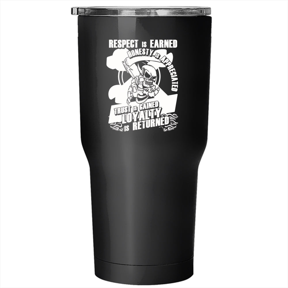 Respect Is Earned Honesty Is Appreciated Tumbler 30 oz Stainless Steel, Bikers Travel Mug