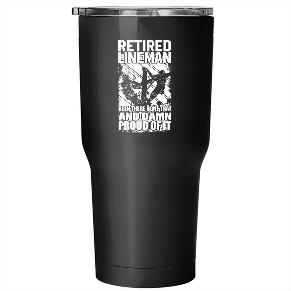 Retired Lineman Tumbler 30 oz Stainless Steel, Cool Retirement Travel Mug