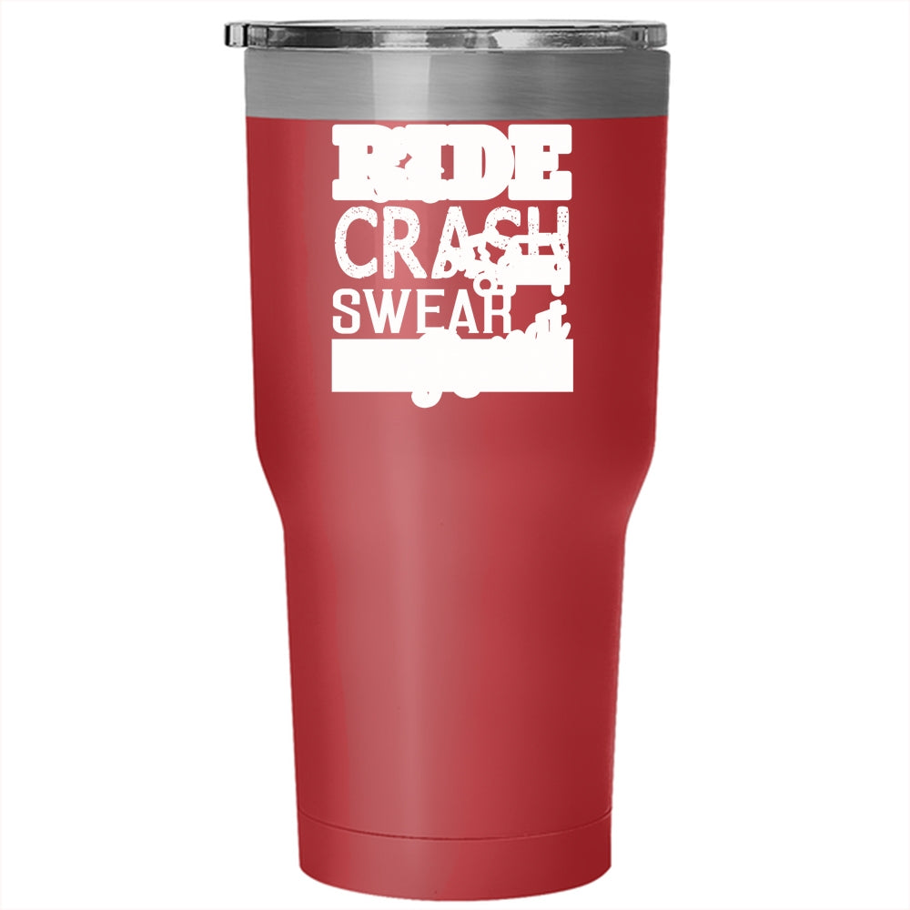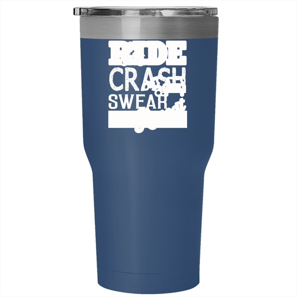 Ride Crash Swear Repeat Tumbler 30 oz Stainless Steel, Cool Riding Travel Mug