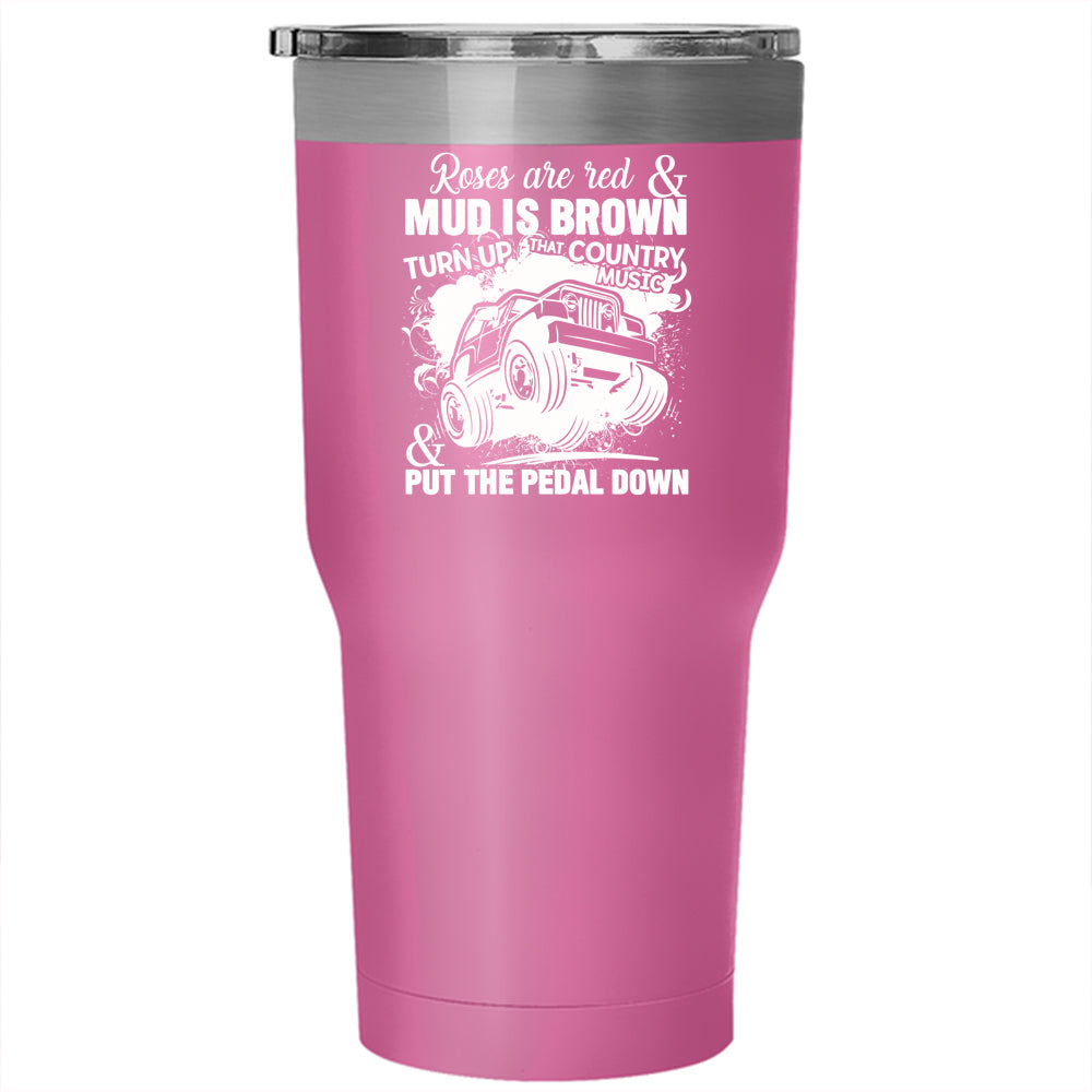 Roses Are Red Tumbler 30 oz Stainless Steel, Country Music And Put The Pedal Down Travel Mug