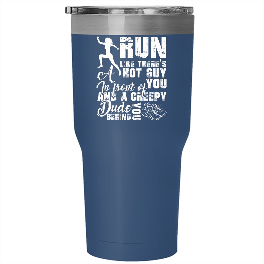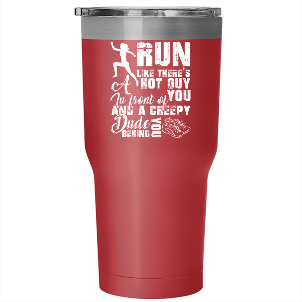 Run Like There's A Hot Guy Tumbler 30 oz Stainless Steel, Best Gift For My Son Travel Mug