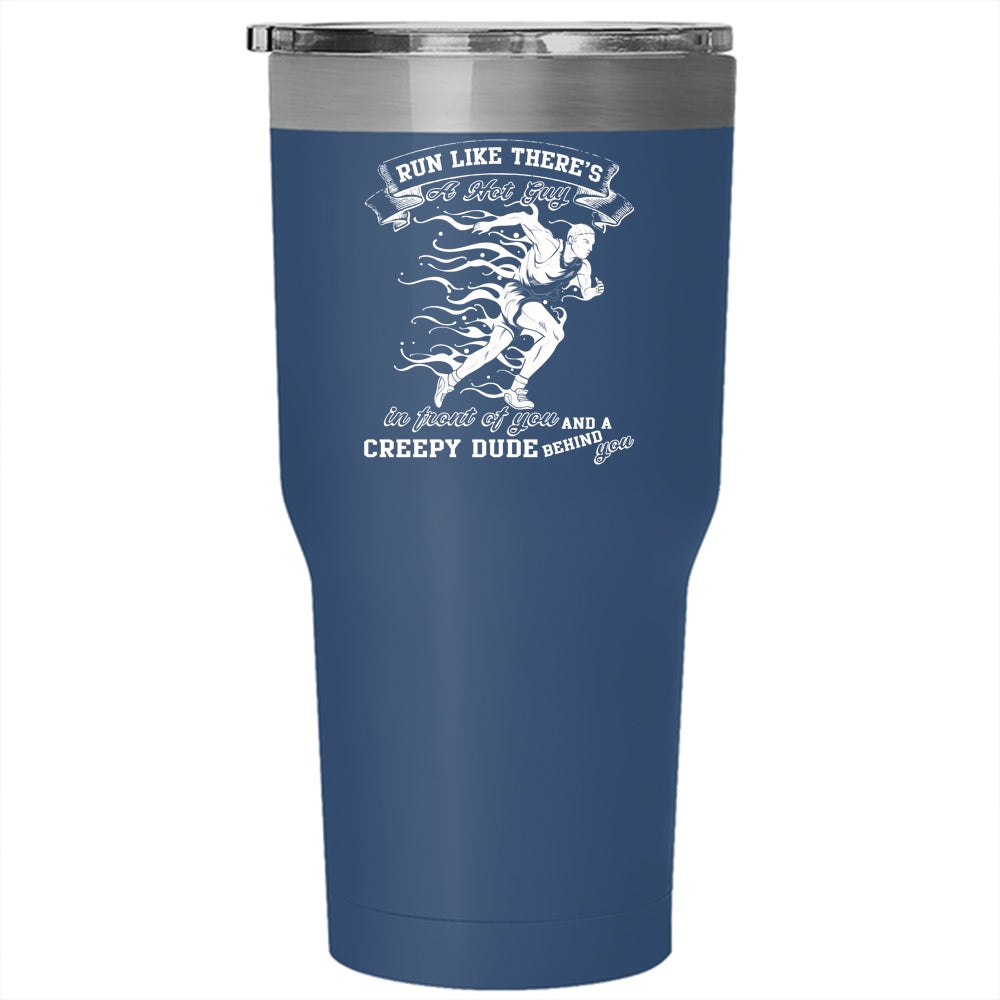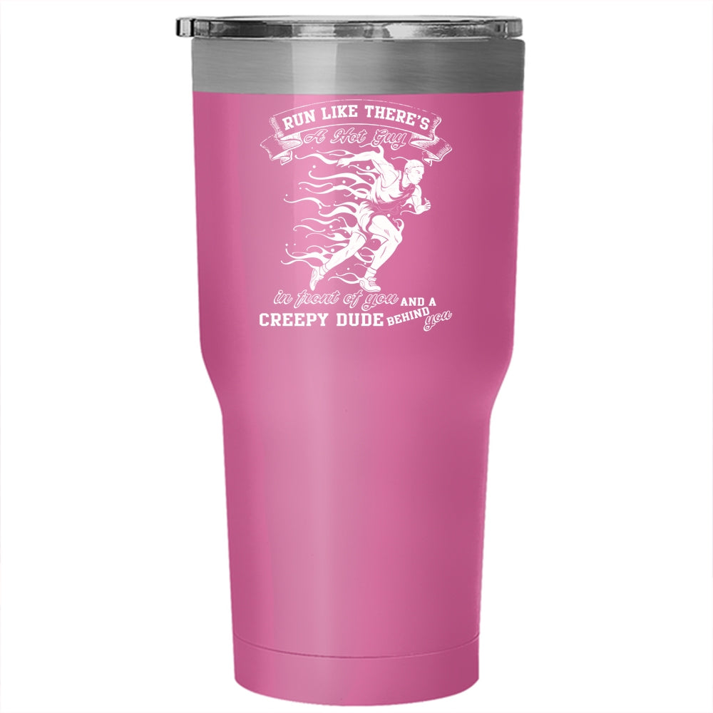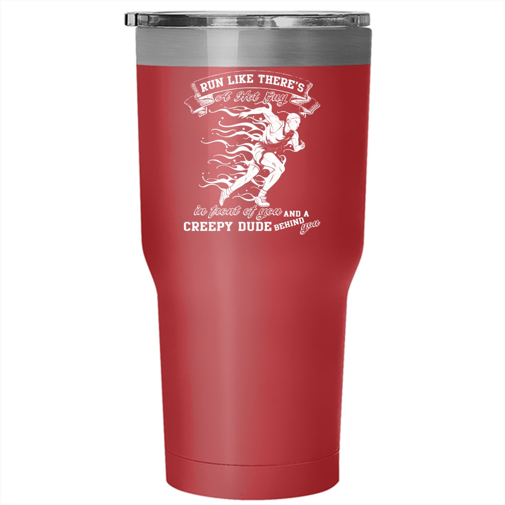 Run Like There's A Hot Guy Tumbler 30 oz Stainless Steel, Creepy Dude Behind You Travel Mug