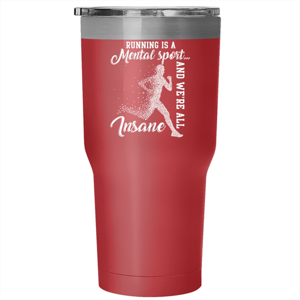 Running Is A Mental Sport Tumbler 30 oz Stainless Steel, We're All Insane Travel Mug