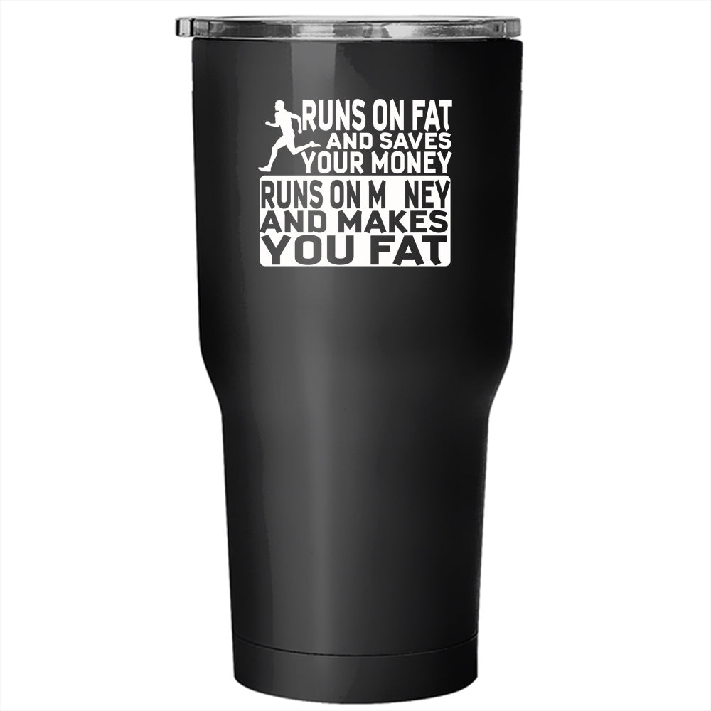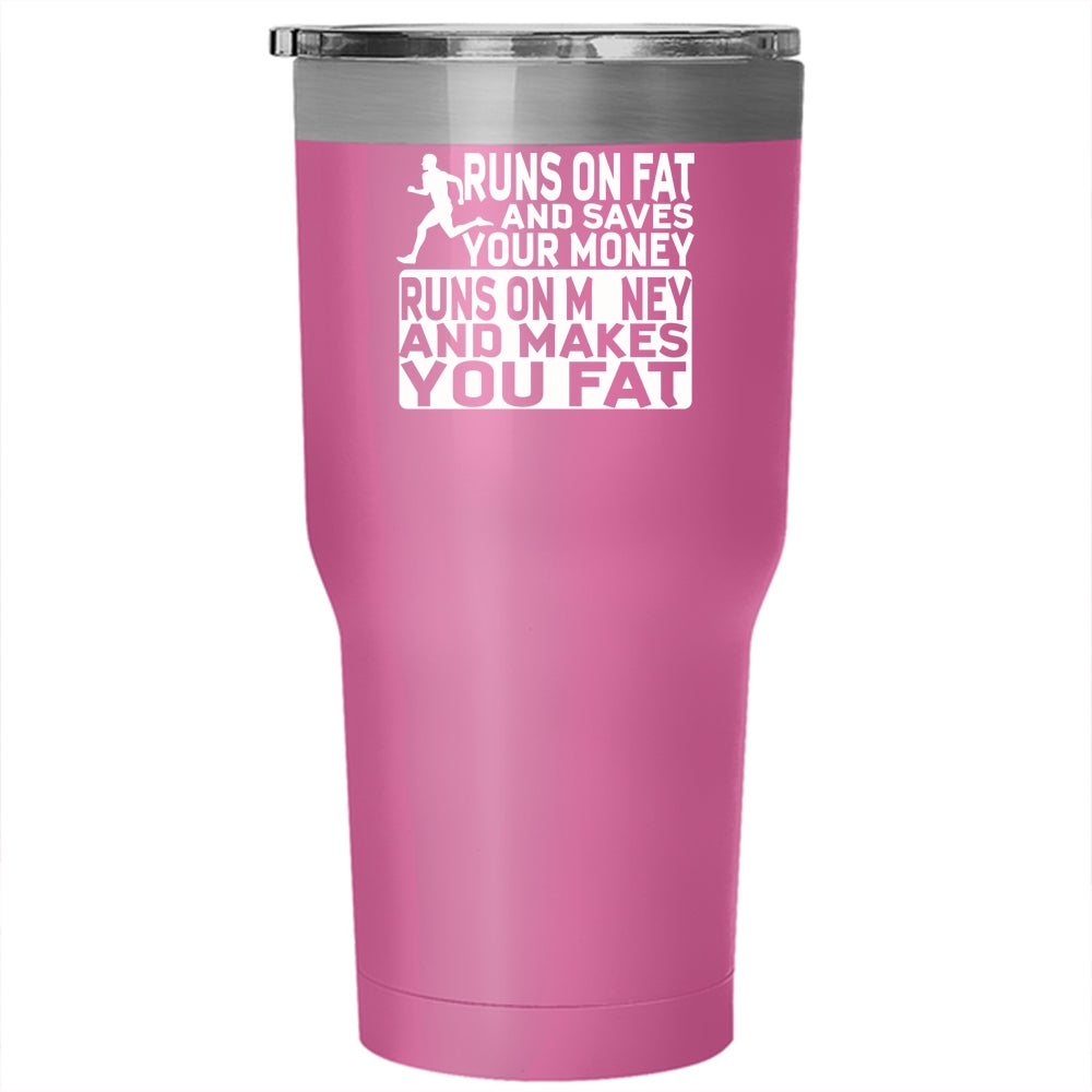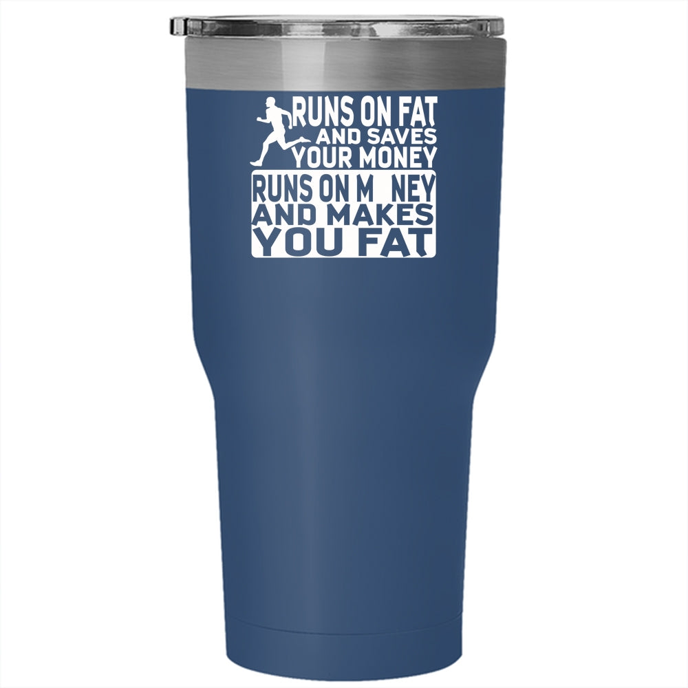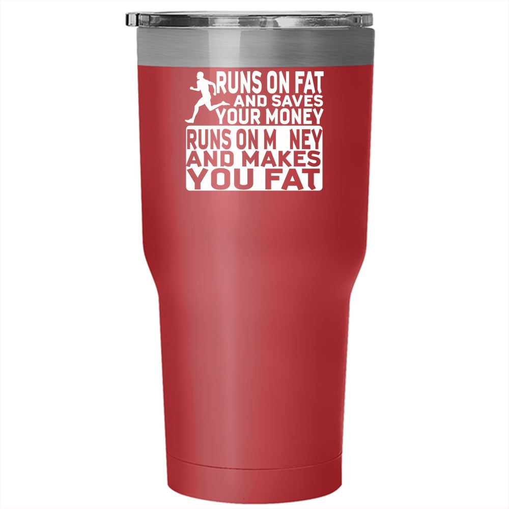Runs On Fat And Saves Your Money Tumbler 30 oz Stainless Steel, Runs On Money And Makes You Fat Travel Mug