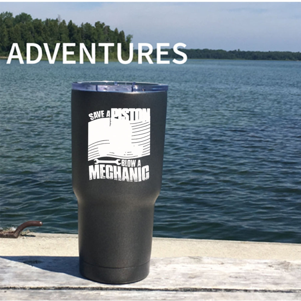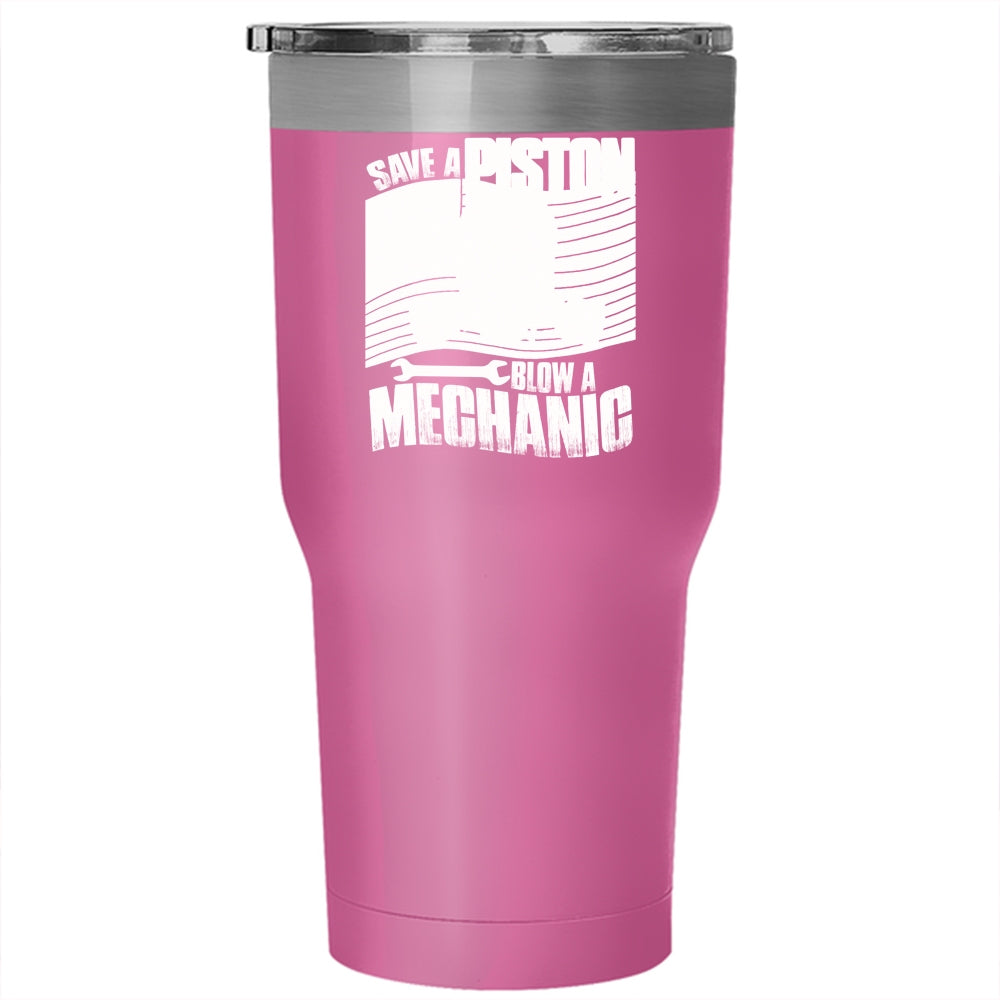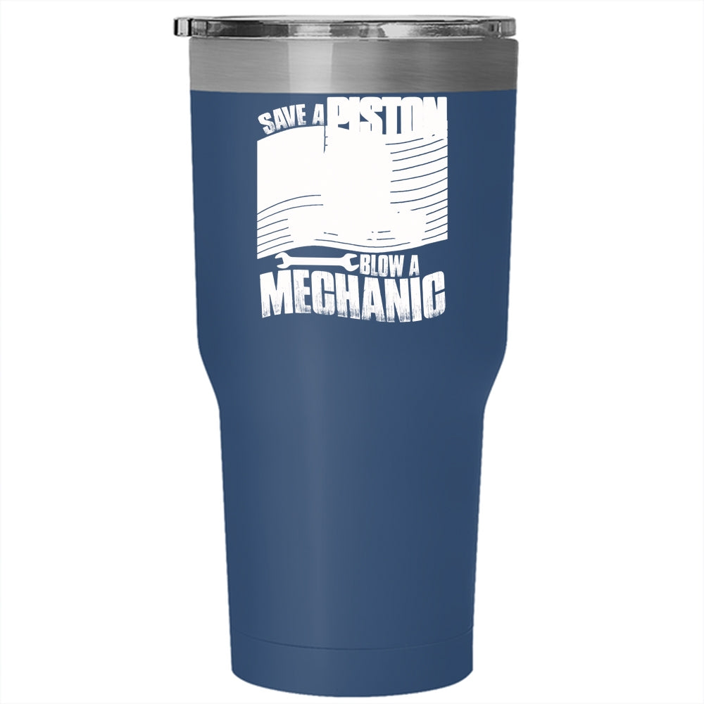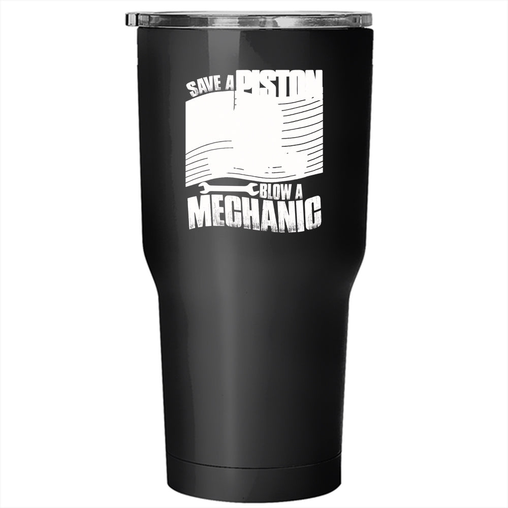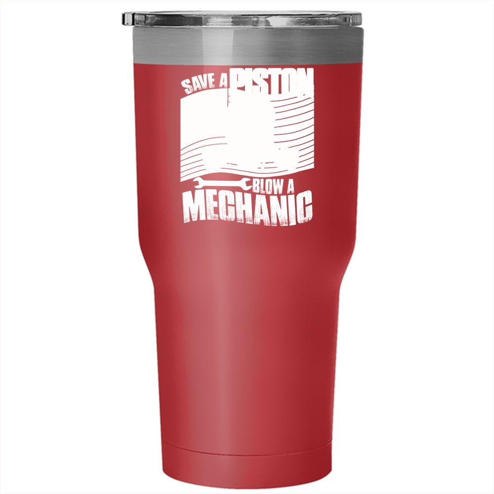 Save A Piston Blow A Mechanic Tumbler 30 oz Stainless Steel, Awesome American Mechanic Travel Mug