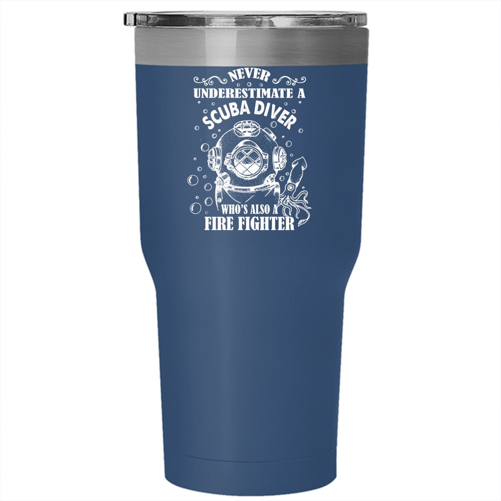 Scuba Diver Is A Fire Fighter Tumbler 30 oz Stainless Steel, Gift For Firefighter Travel Mug