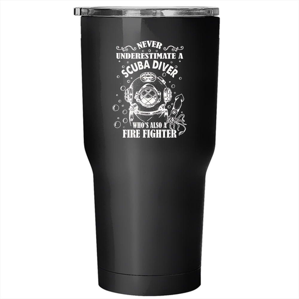 Scuba Diver Is Also A Fire Fighter Tumbler 30 oz Stainless Steel, Awesome Scuba Diver Travel Mug