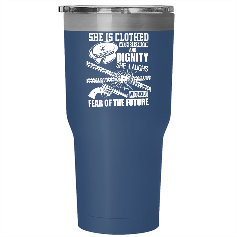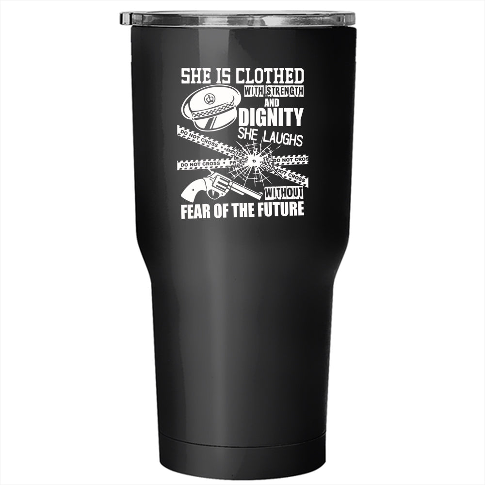 She Is Clothed With Strength Tumbler 30 oz Stainless Steel, Female Policeman Travel Mug