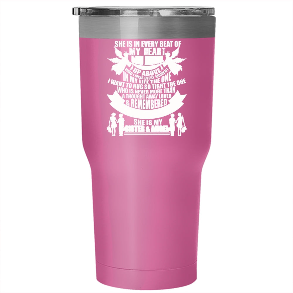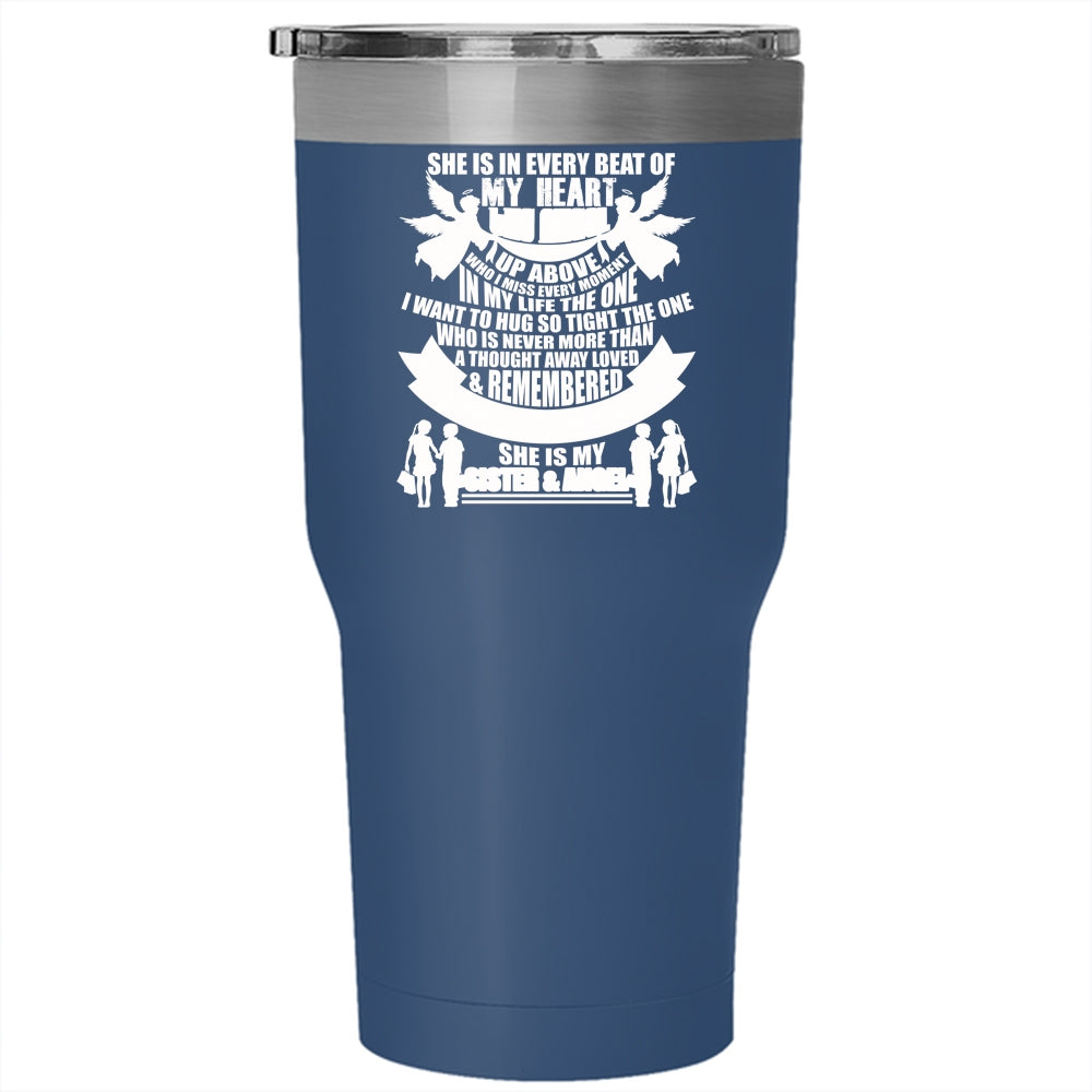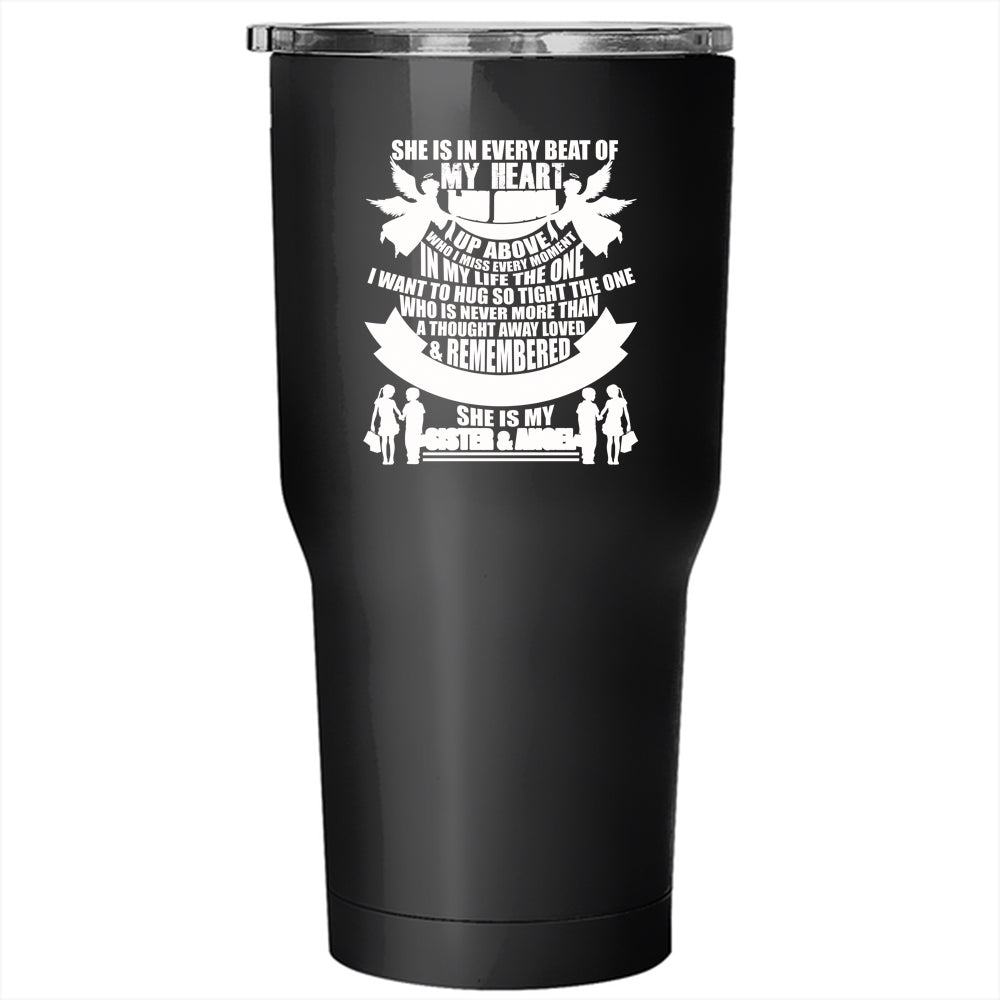 She Is In Every Beat Of My Heart Tumbler 30 oz Stainless Steel, She Is My Sister And Angel Travel Mug