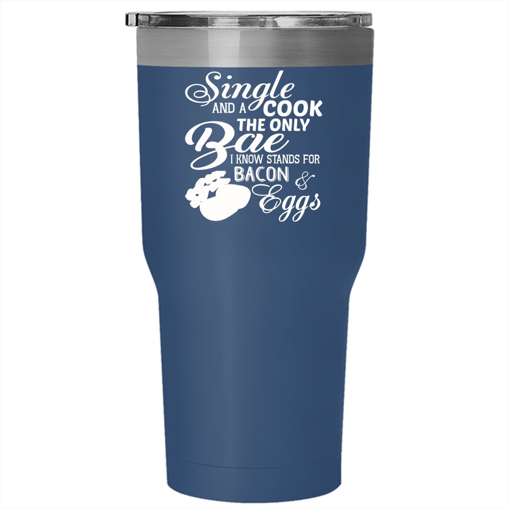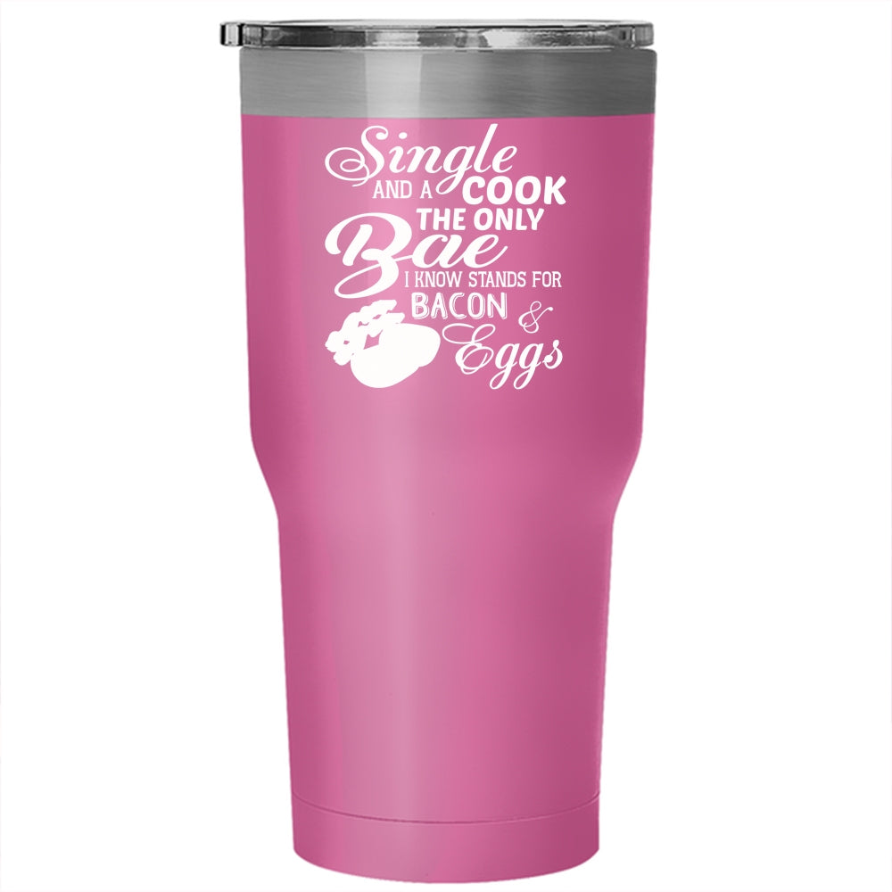 Single And A Cook The Only Bae Tumbler 30 oz Stainless Steel, I Know Stands For Bacon And Eggs Travel Mug