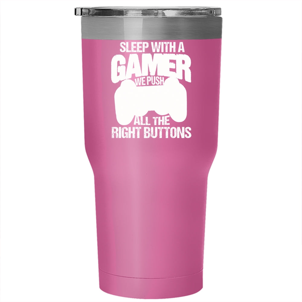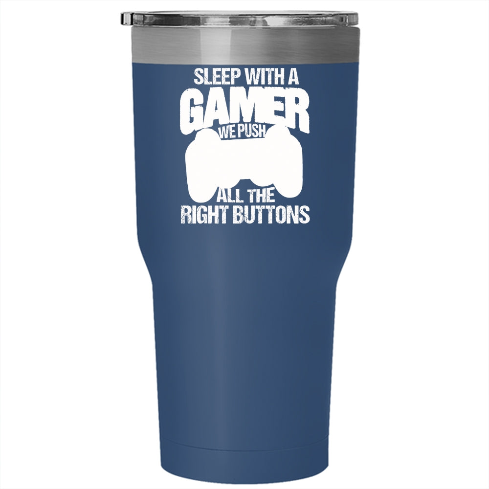 Sleep With A Gamer Tumbler 30 oz Stainless Steel, We Push All The right Buttons Travel Mug