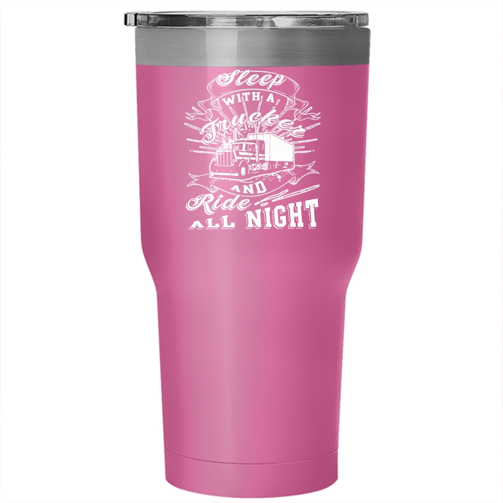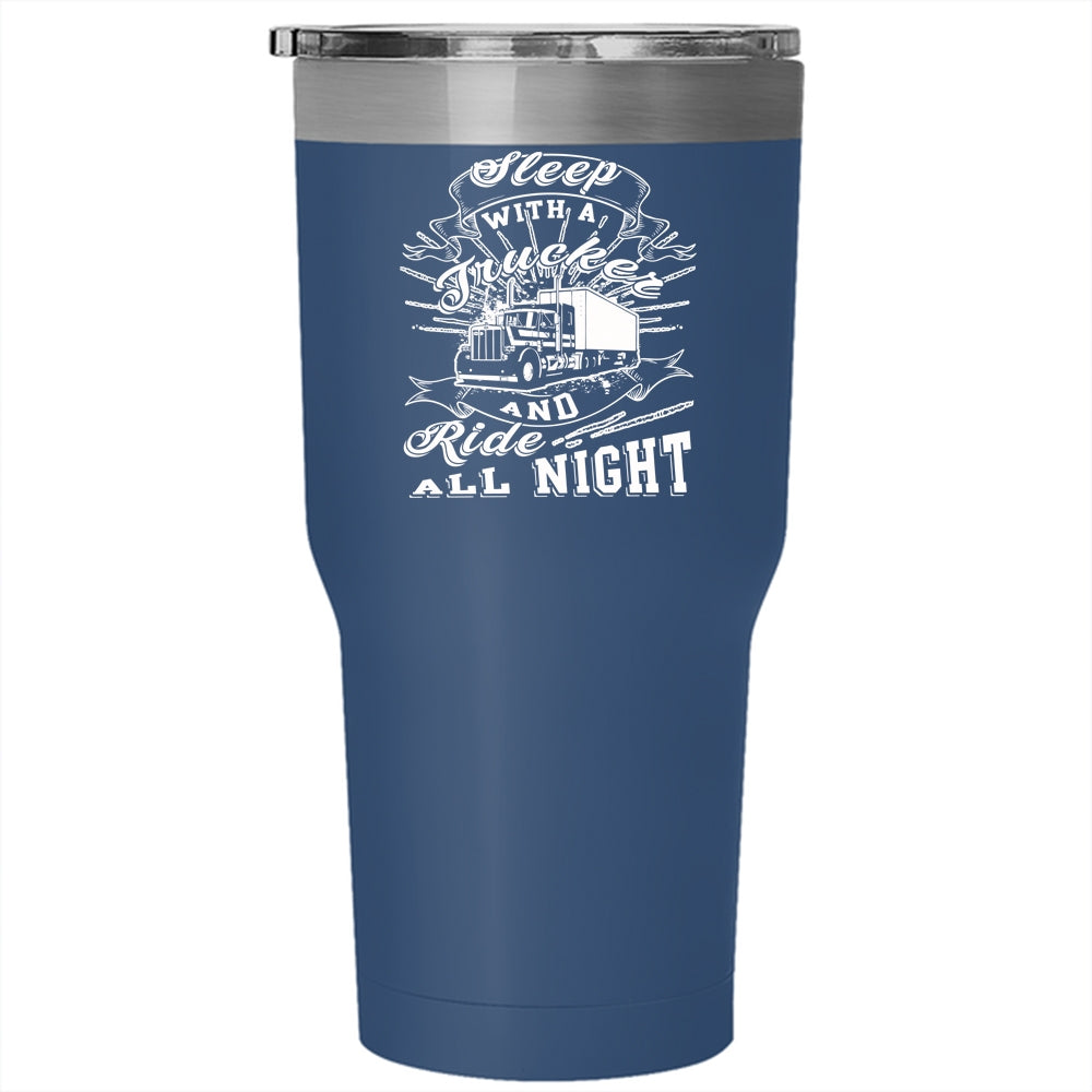 Sleep With A Trucker Tumbler 30 oz Stainless Steel, Ride All Night Travel Mug