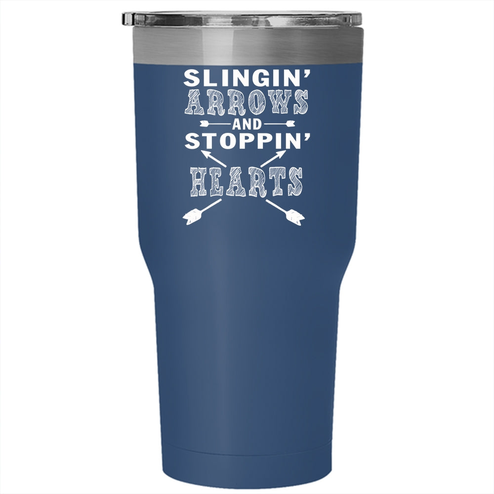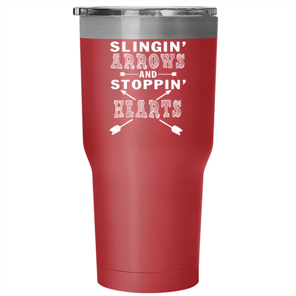 Slinging Arrows Tumbler 30 oz Stainless Steel, Stopping Hearts Travel Mug