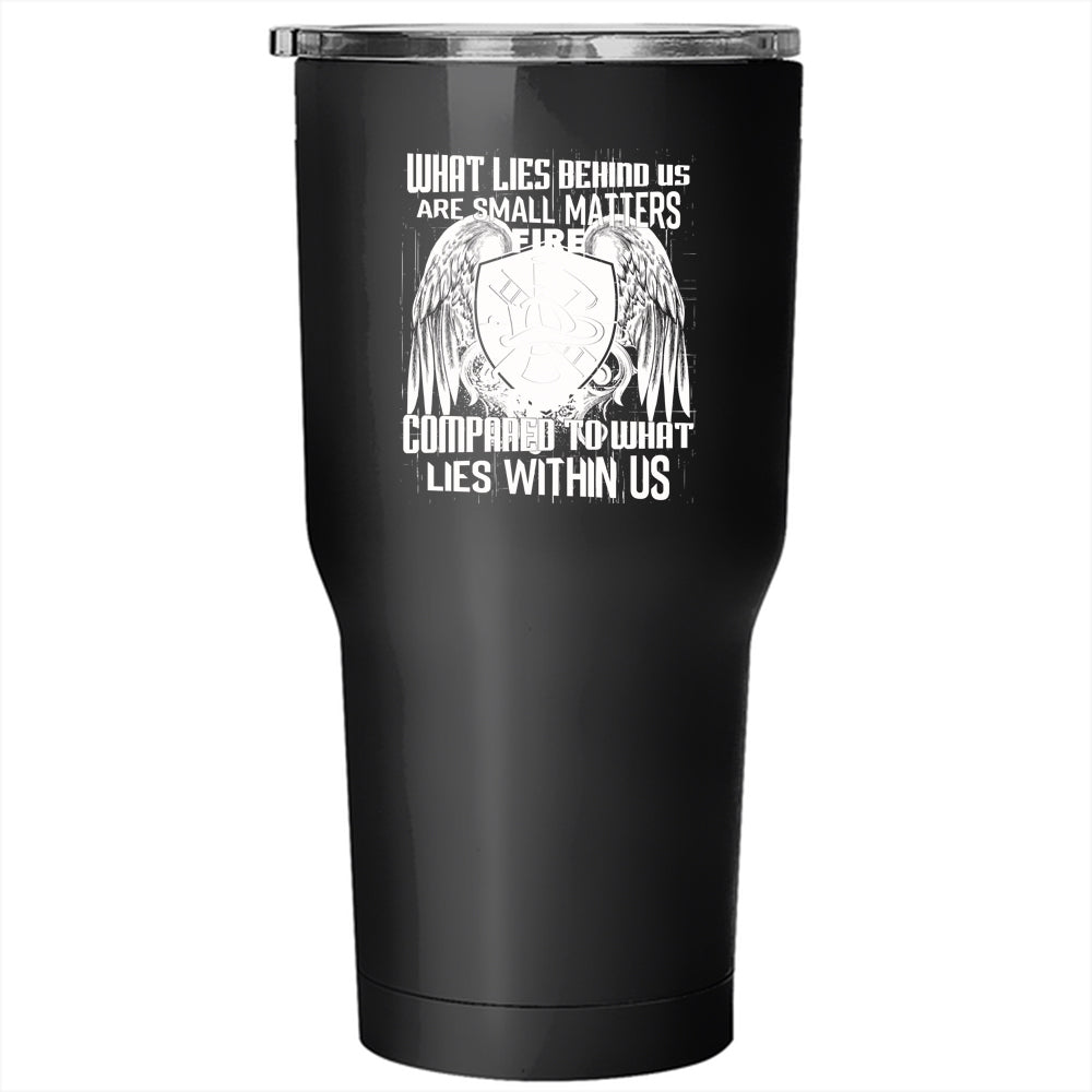 Small Matters Fire Dept Tumbler 30 oz Stainless Steel, Cool Firefighter Travel Mug