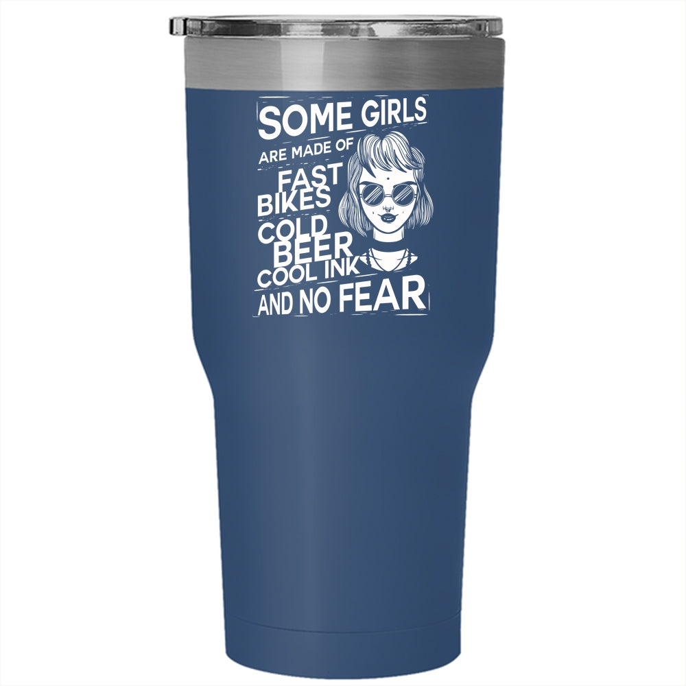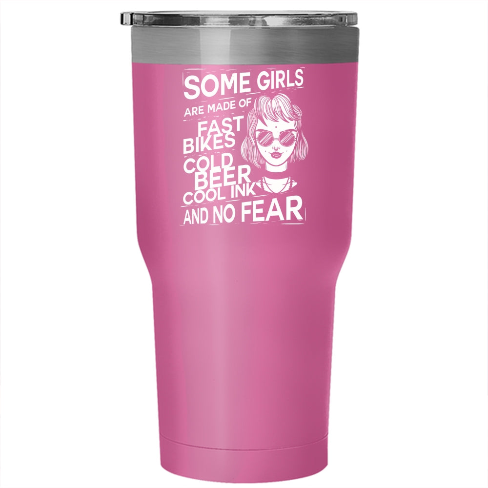 Some Girls Are Made Of Fast Bikes Tumbler 30 oz Stainless Steel, Cold Beer Cool Ink And No Fear Travel Mug