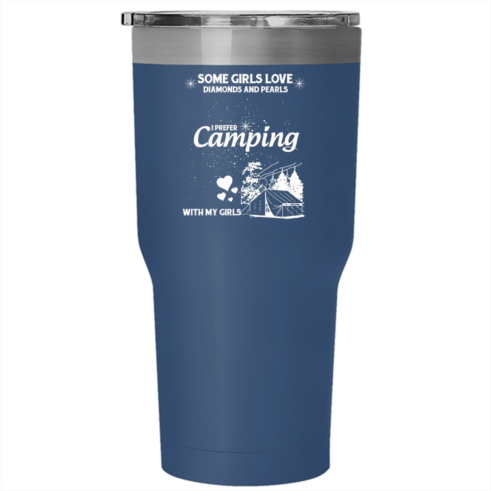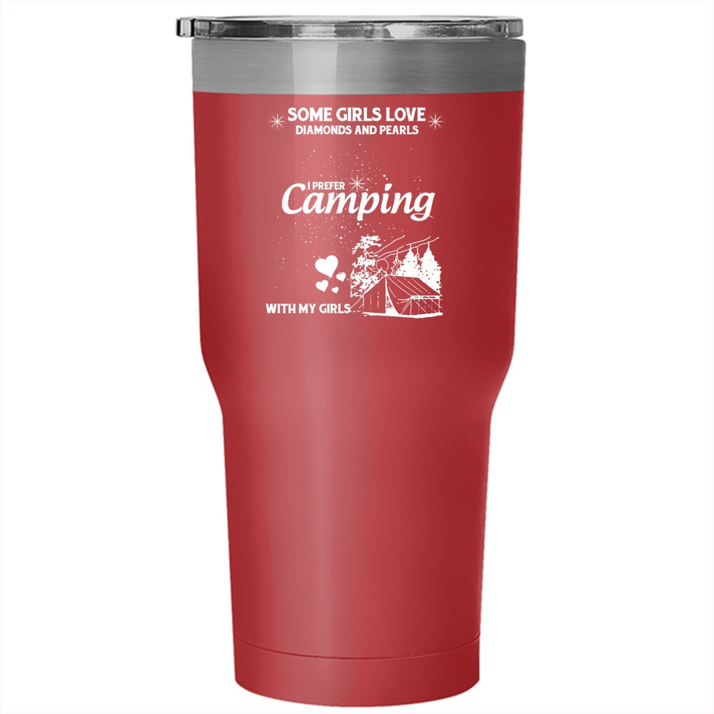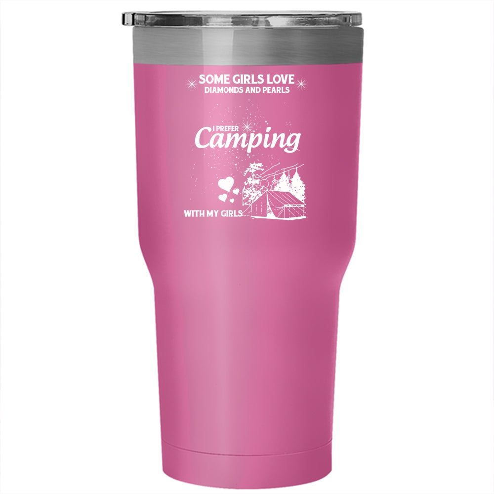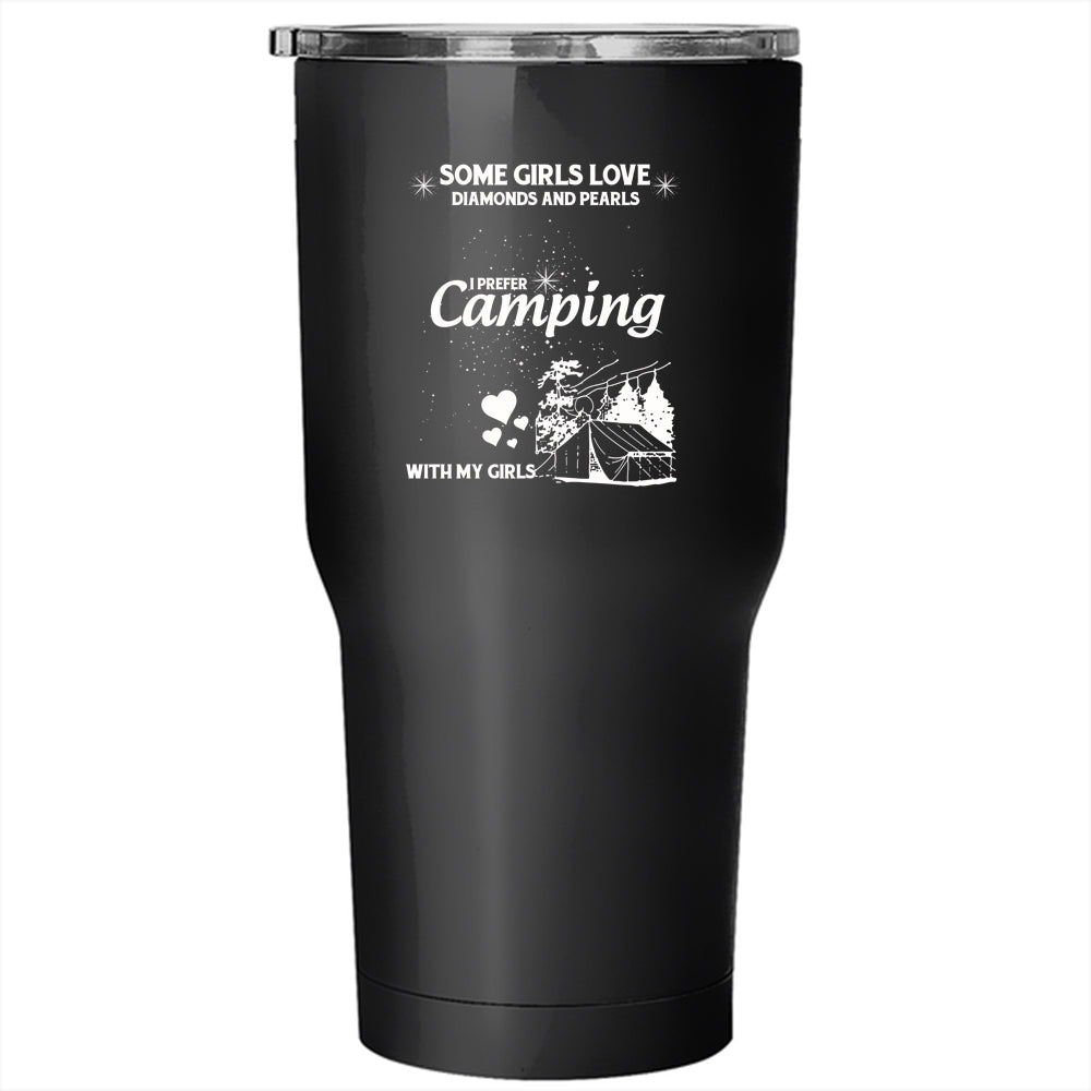 Some Girls Love Diamonds And Pearls Tumbler 30 oz Stainless Steel, I Prefer Camping With My Girls Travel Mug