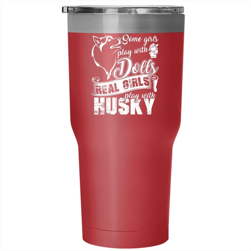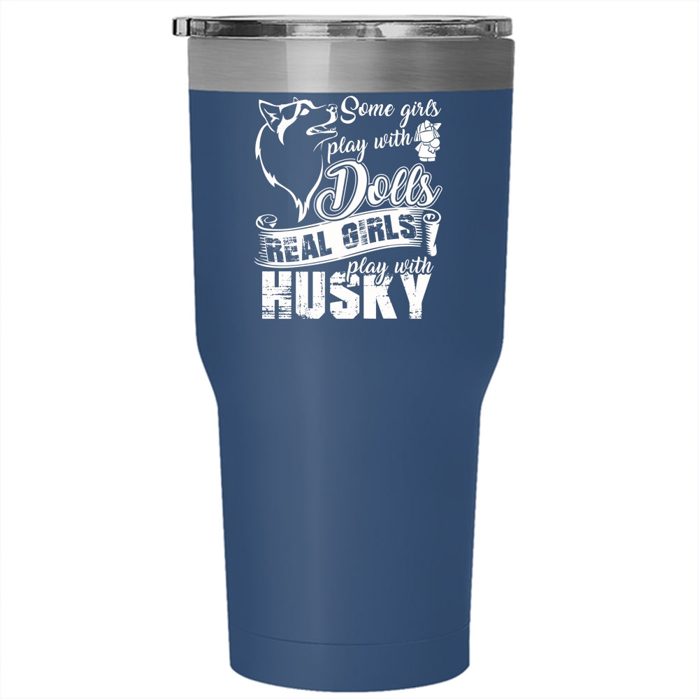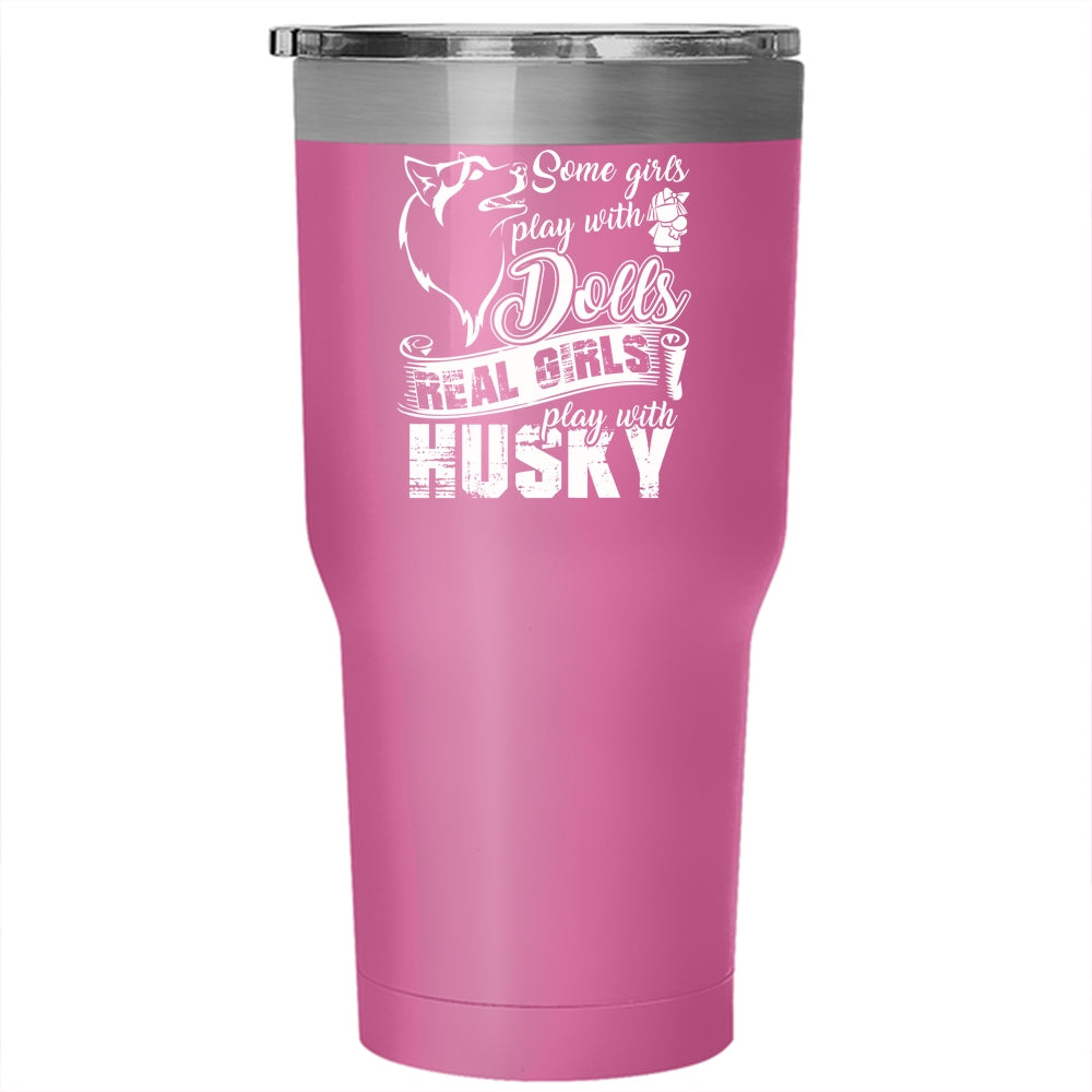 Some Girls Play With Dolls Tumbler 30 oz Stainless Steel, Real Girls Play With Husky Travel Mug