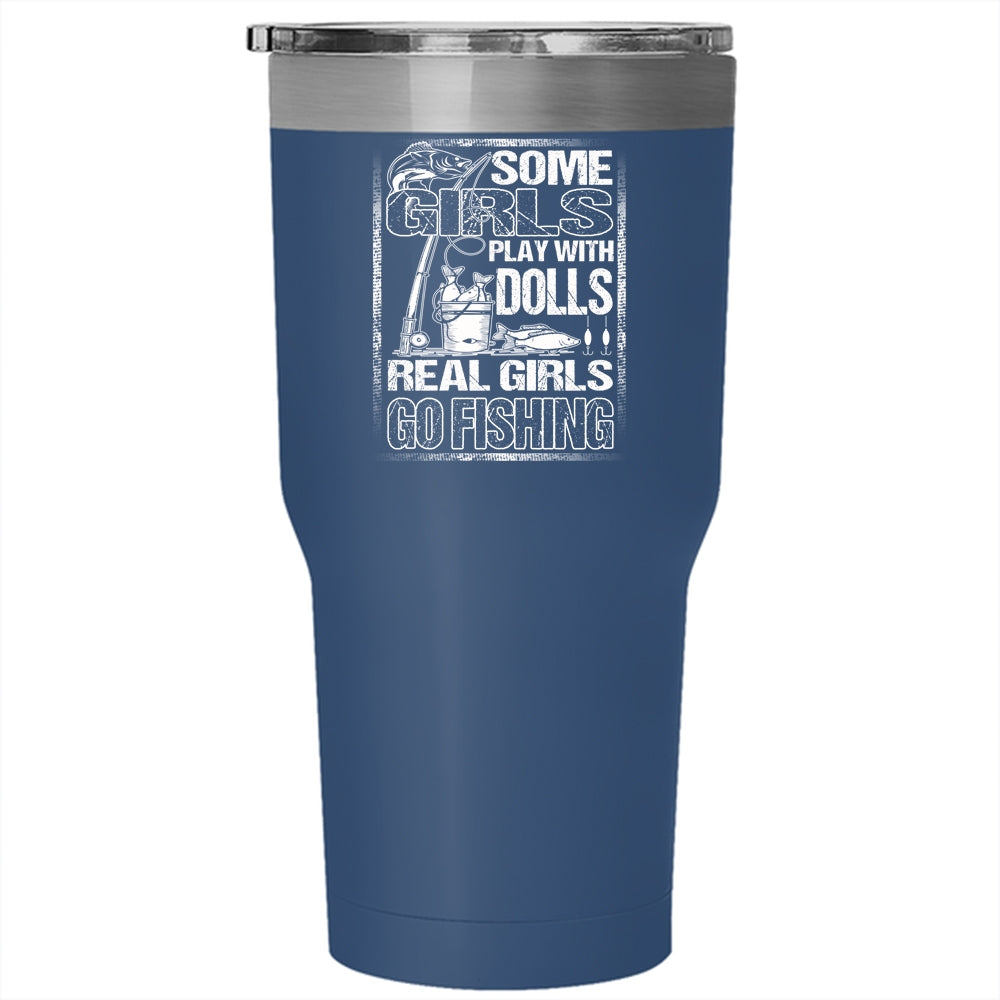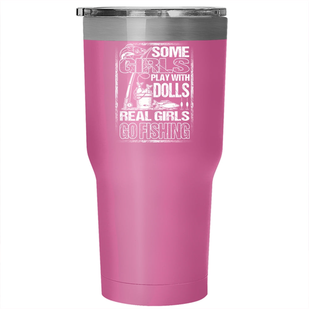Some Girls Play With Dools Tumbler 30 oz Stainless Steel, Real Girls Go Fishing Travel Mug