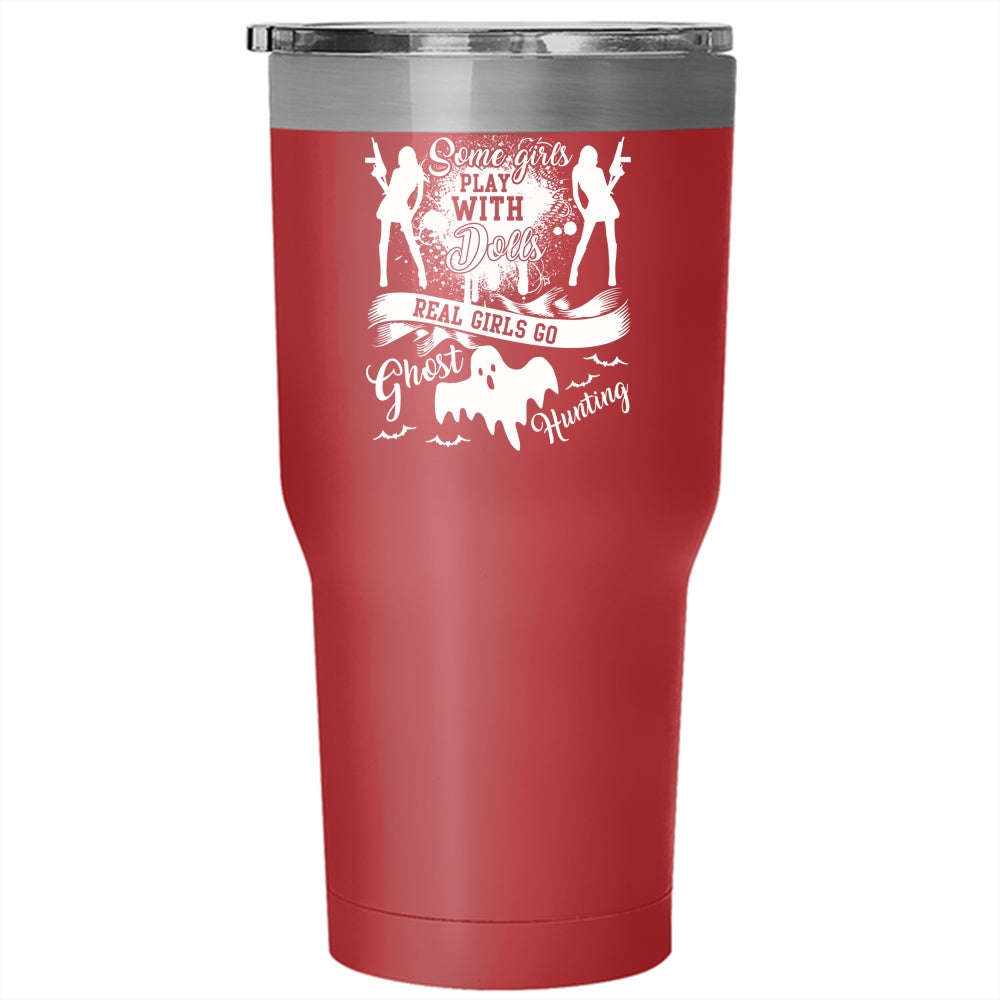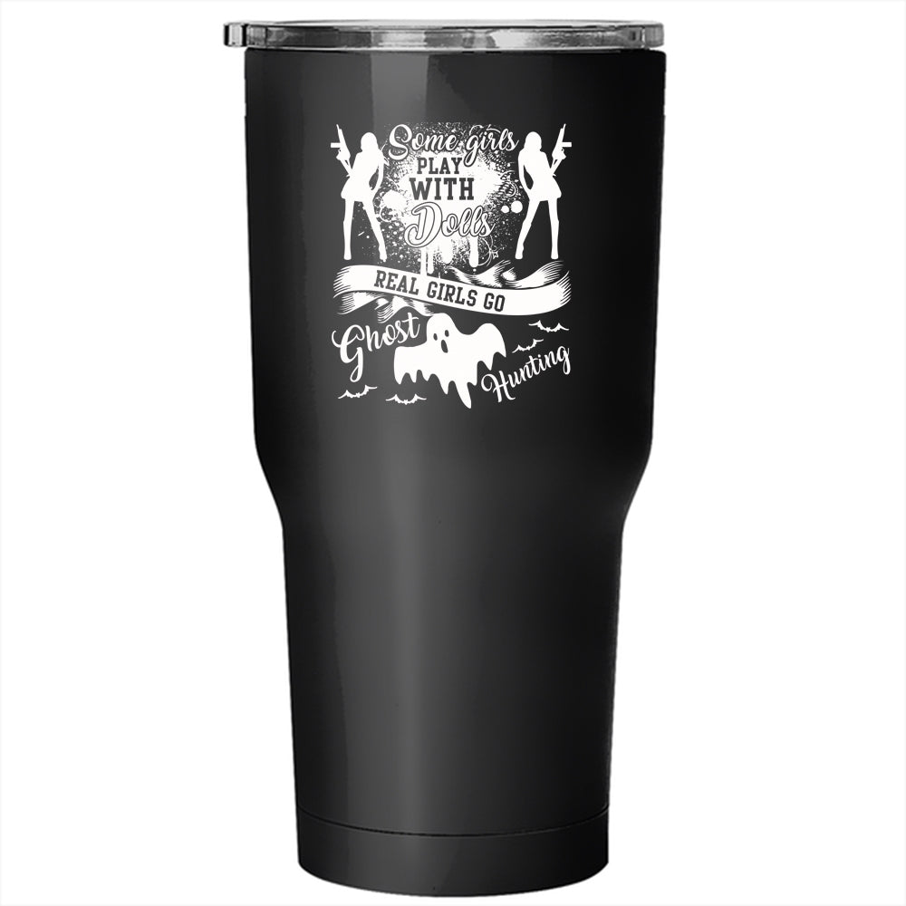 Some Girls Play With Dools Tumbler 30 oz Stainless Steel, Real Girls Go Ghost Hunting Travel Mug