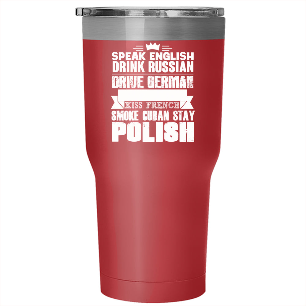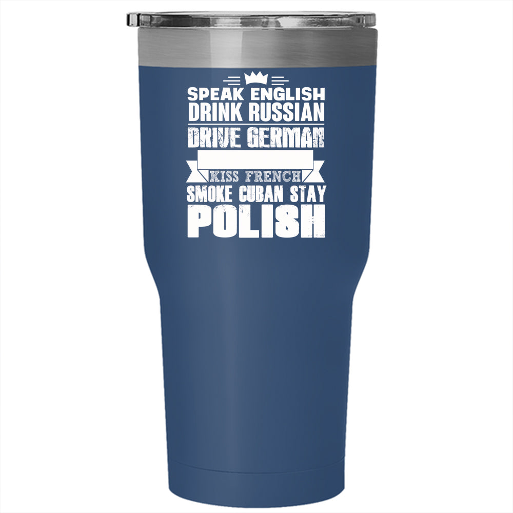 Speak English Drink Russian Tumbler 30 oz Stainless Steel, Drive German Wear Italian Travel Mug