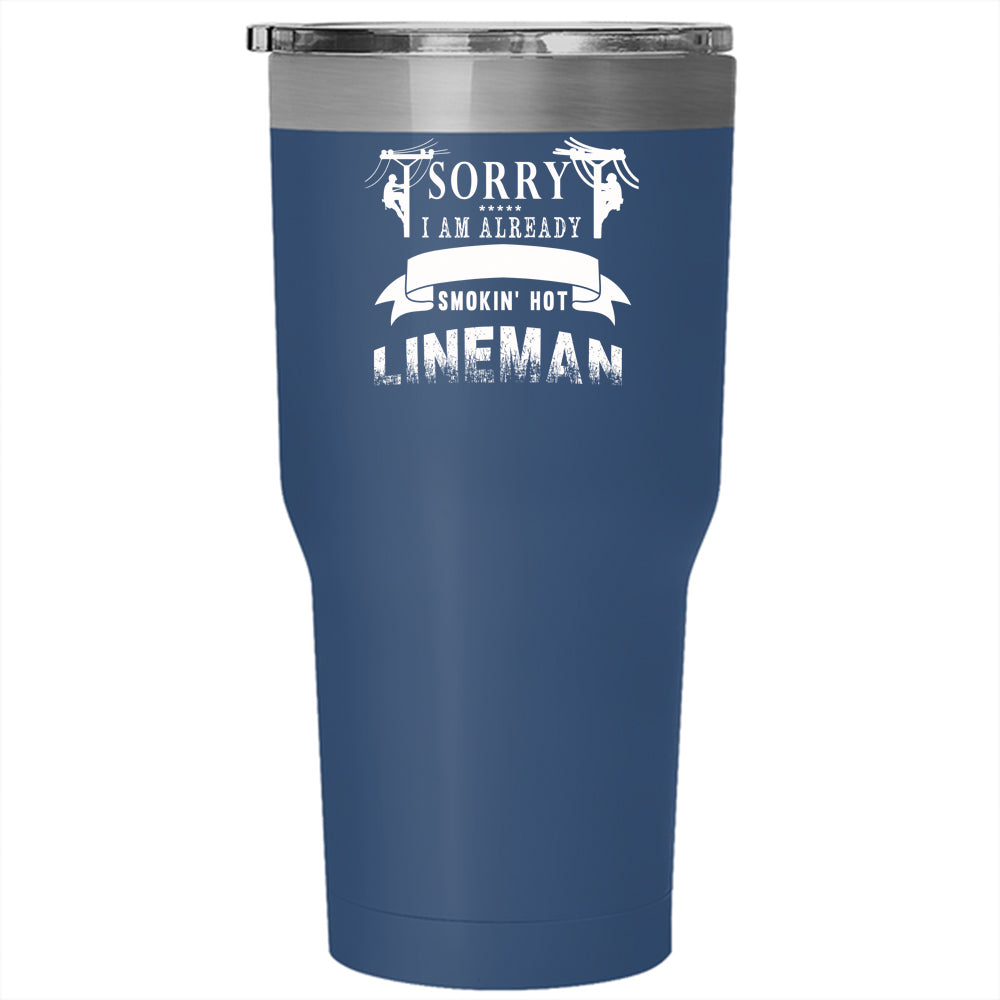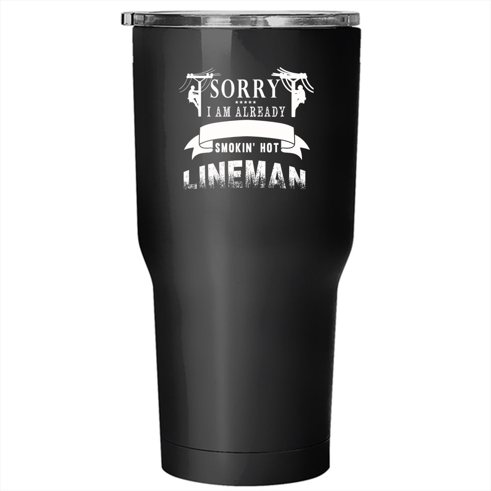 Taken By A Smoking Hot Lineman Tumbler 30 oz Stainless Steel, Married Travel Mug
