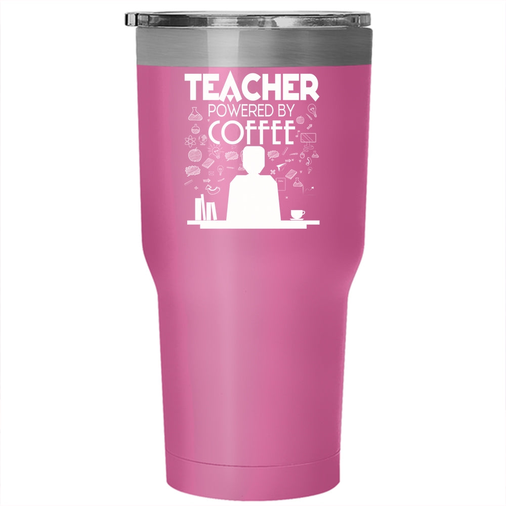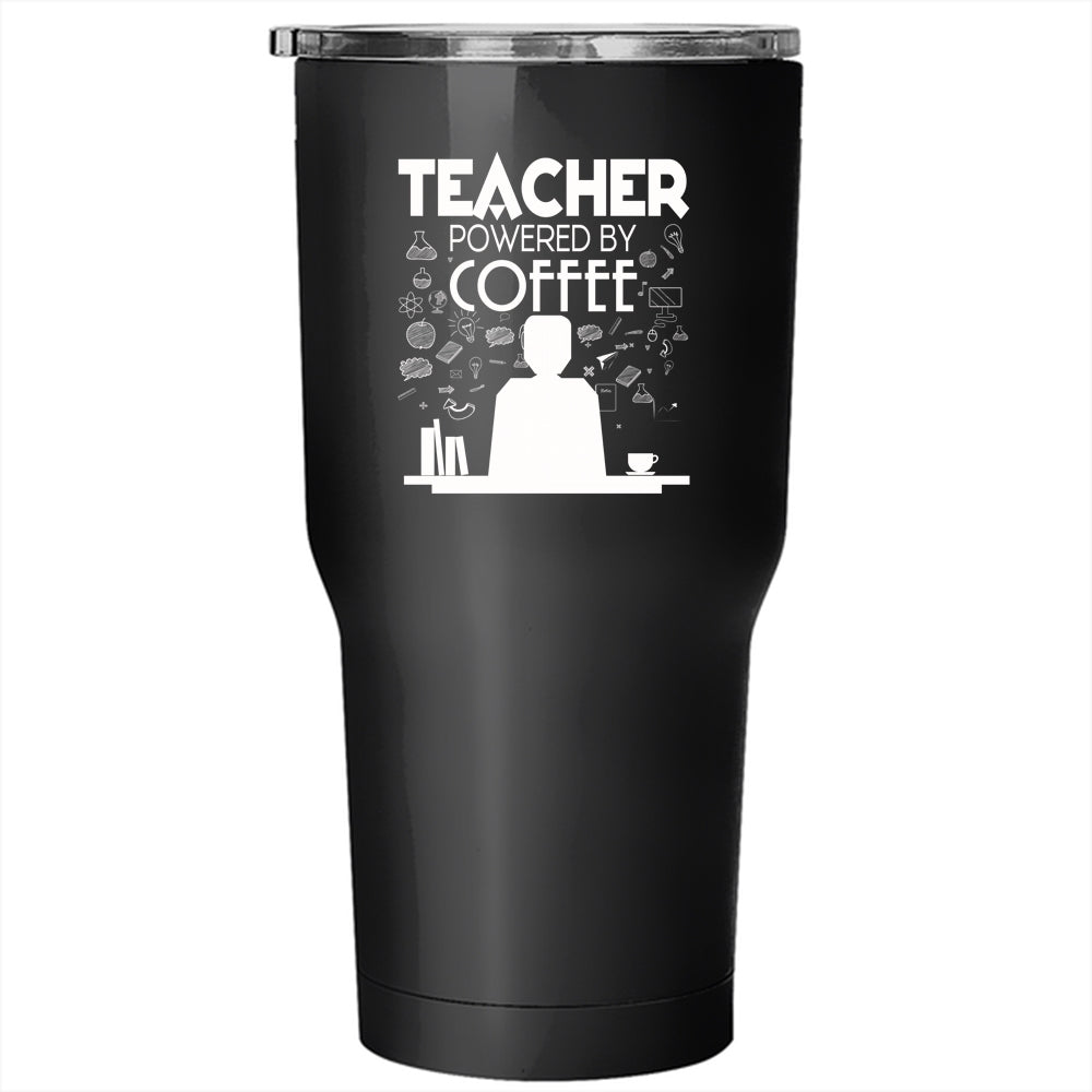 Teacher Powered By Coffee Tumbler 30 oz Stainless Steel, Funny Gift For Teacher Travel Mug
