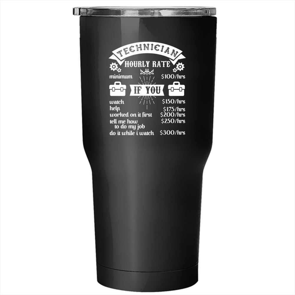 Techincician Hourly Rate Tumbler 30 oz Stainless Steel, Gift For Dad Travel Mug
