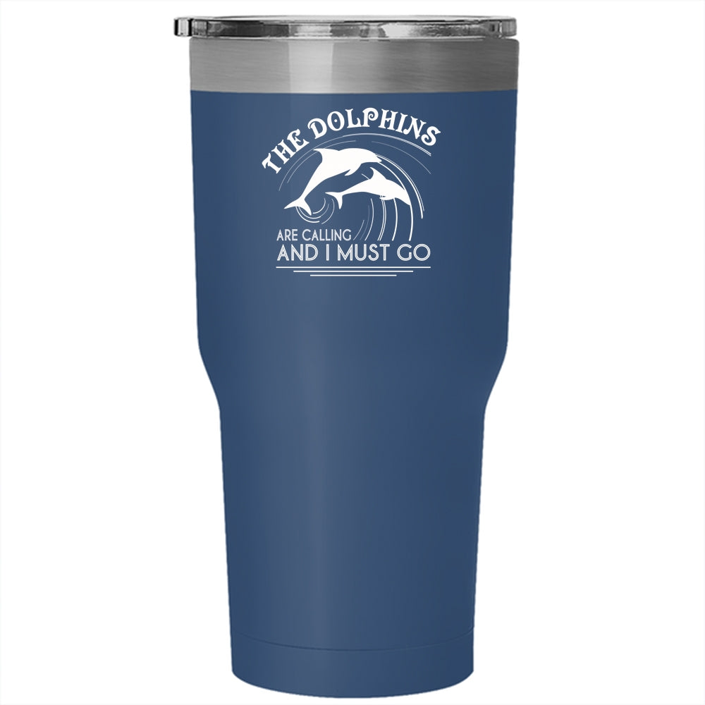 The Dolphins Are Calling Tumbler 30 oz Stainless Steel, I Must Go Travel Mug