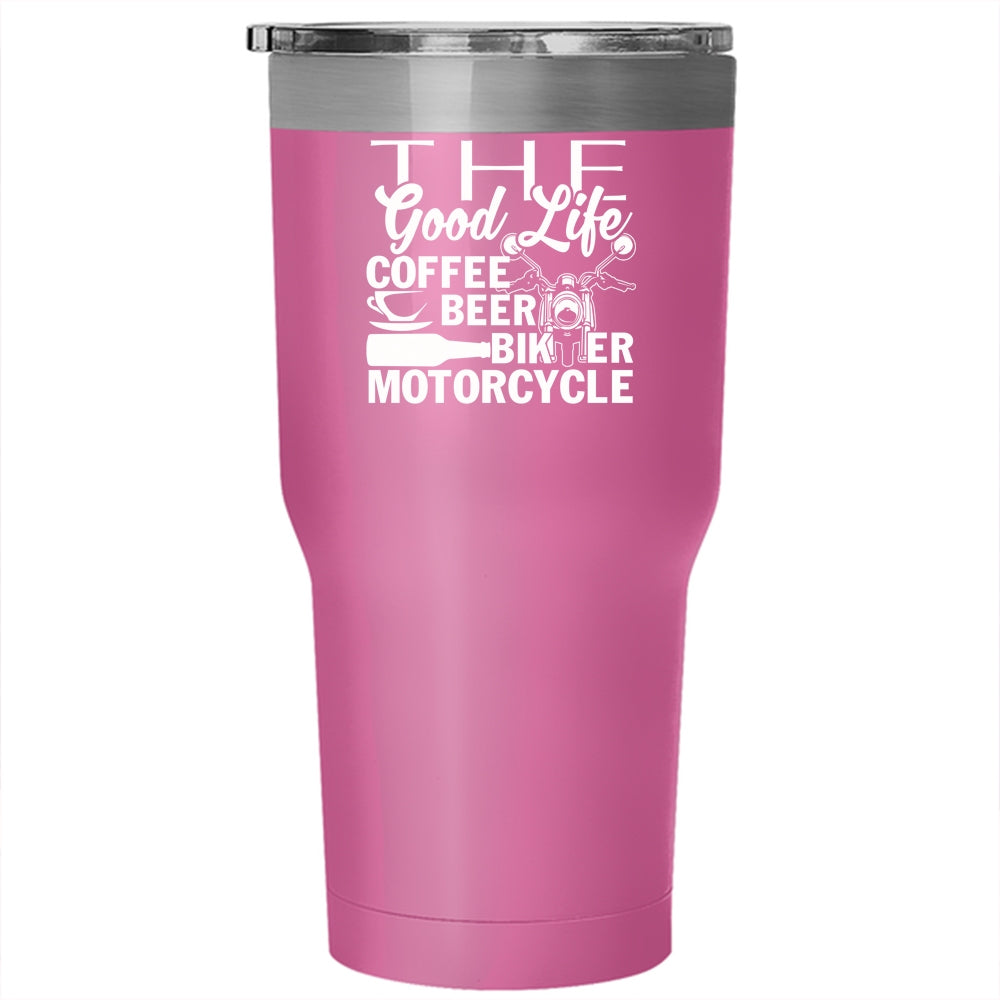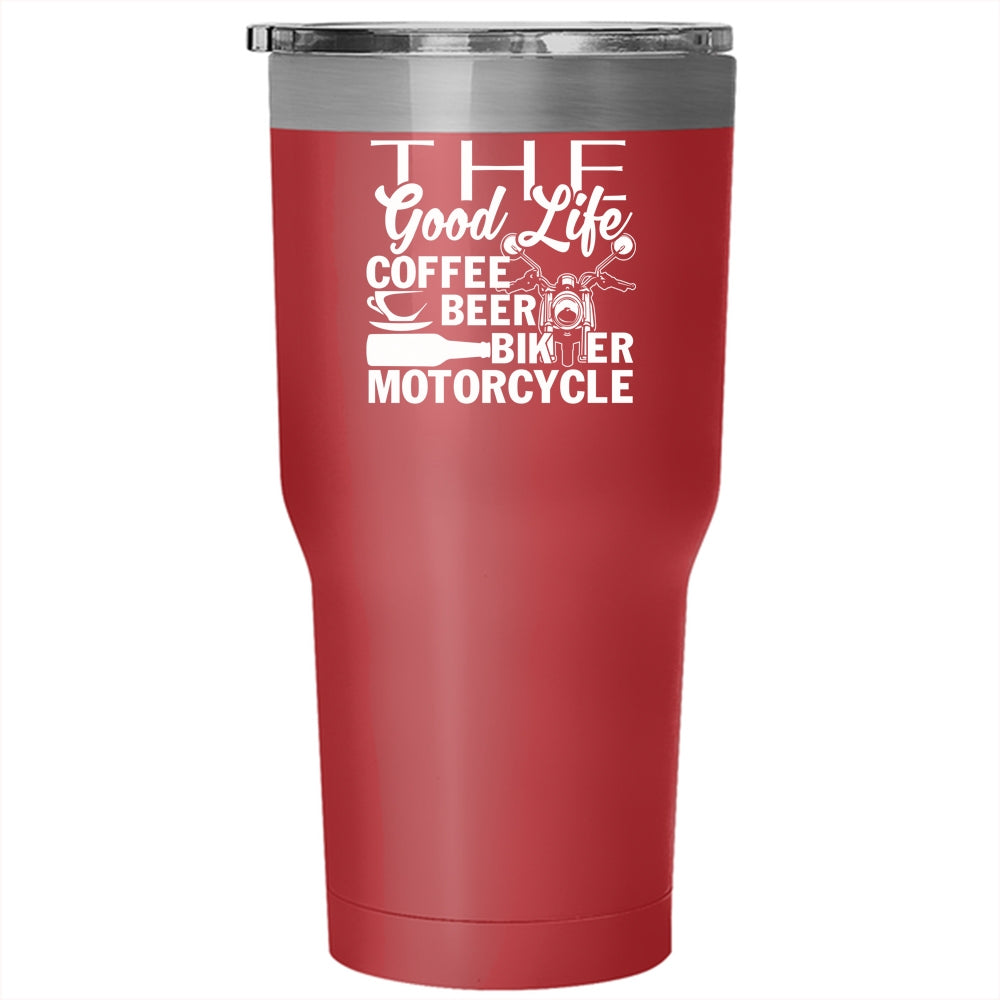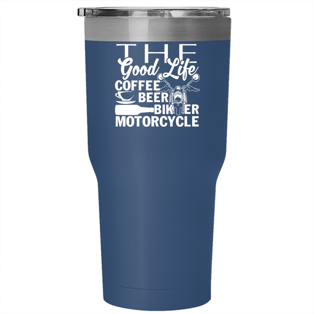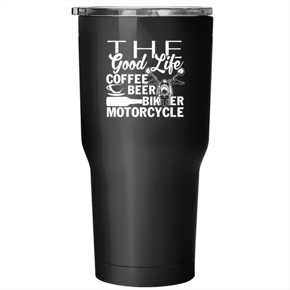 The Good Life Coffee Beer Tumbler 30 oz Stainless Steel, Biker Motorcycle Travel Mug