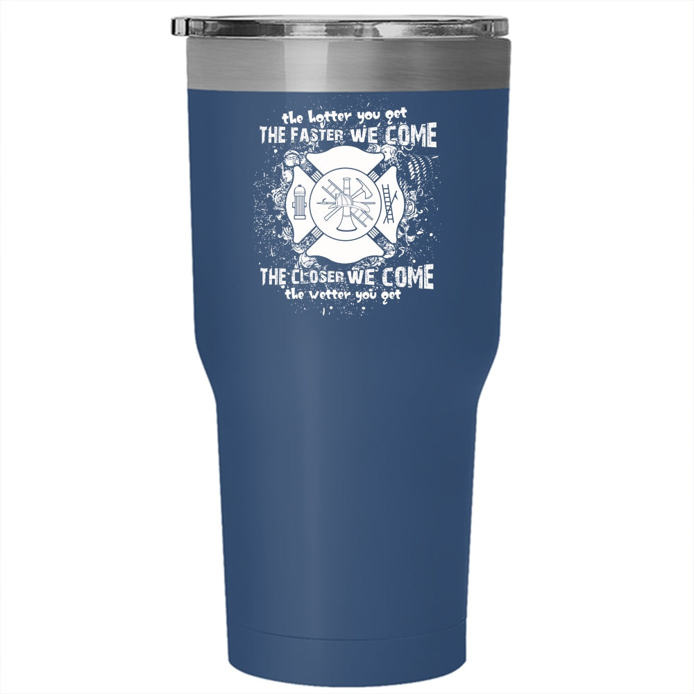 The Hotter You Get The Faster We Come Tumbler 30 oz Stainless Steel, Funny Fireman Travel Mug