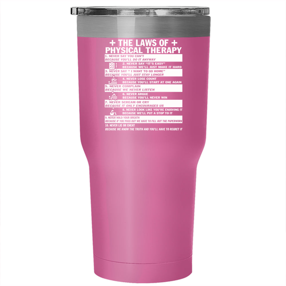 The Laws Of Physical Therapy Tumbler 30 oz Stainless Steel, Cool Physical Therapist Travel Mug