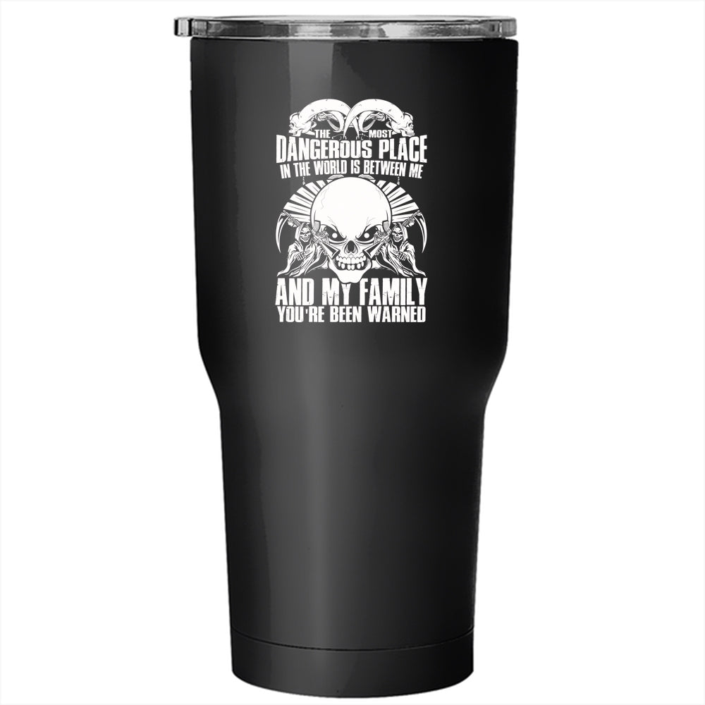 The Most Dangerous Place In The World Tumbler 30 oz Stainless Steel, Between Me And My Family Travel Mug