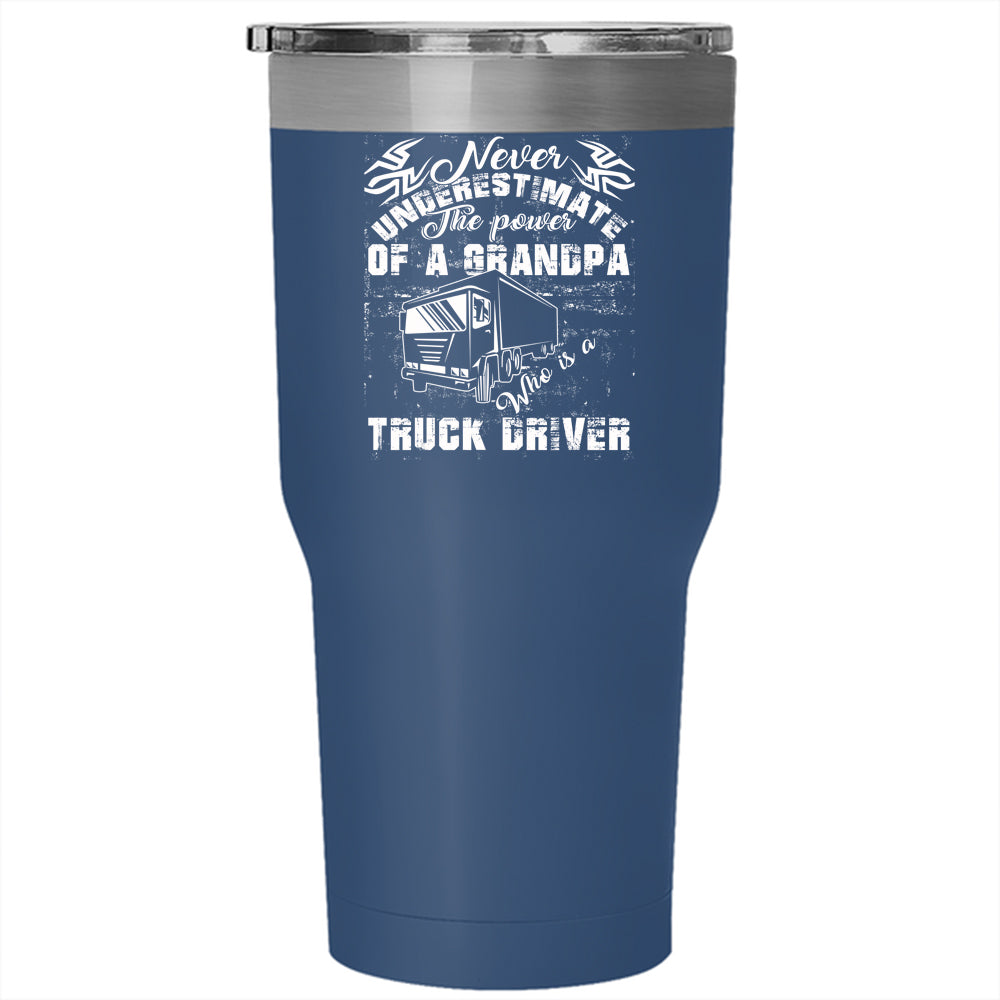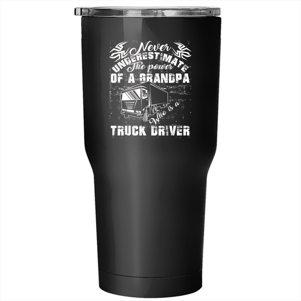The Power Of A Grandpa Is A Truck Driver Tumbler 30 oz Stainless Steel, Funny Trucker Travel Mug