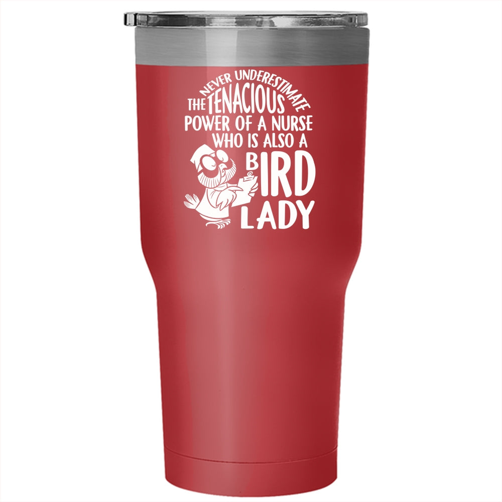 The Power Of A Nurse Is Also A Bird Lady Tumbler 30 oz Stainless Steel, Cute Nurses Travel Mug
