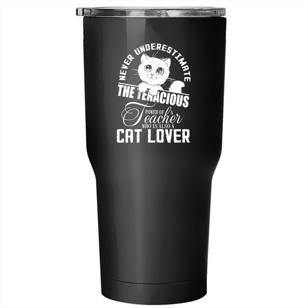 The Power Of A Teacher Tumbler 30 oz Stainless Steel, Who Is Also A Cat Lover Travel Mug