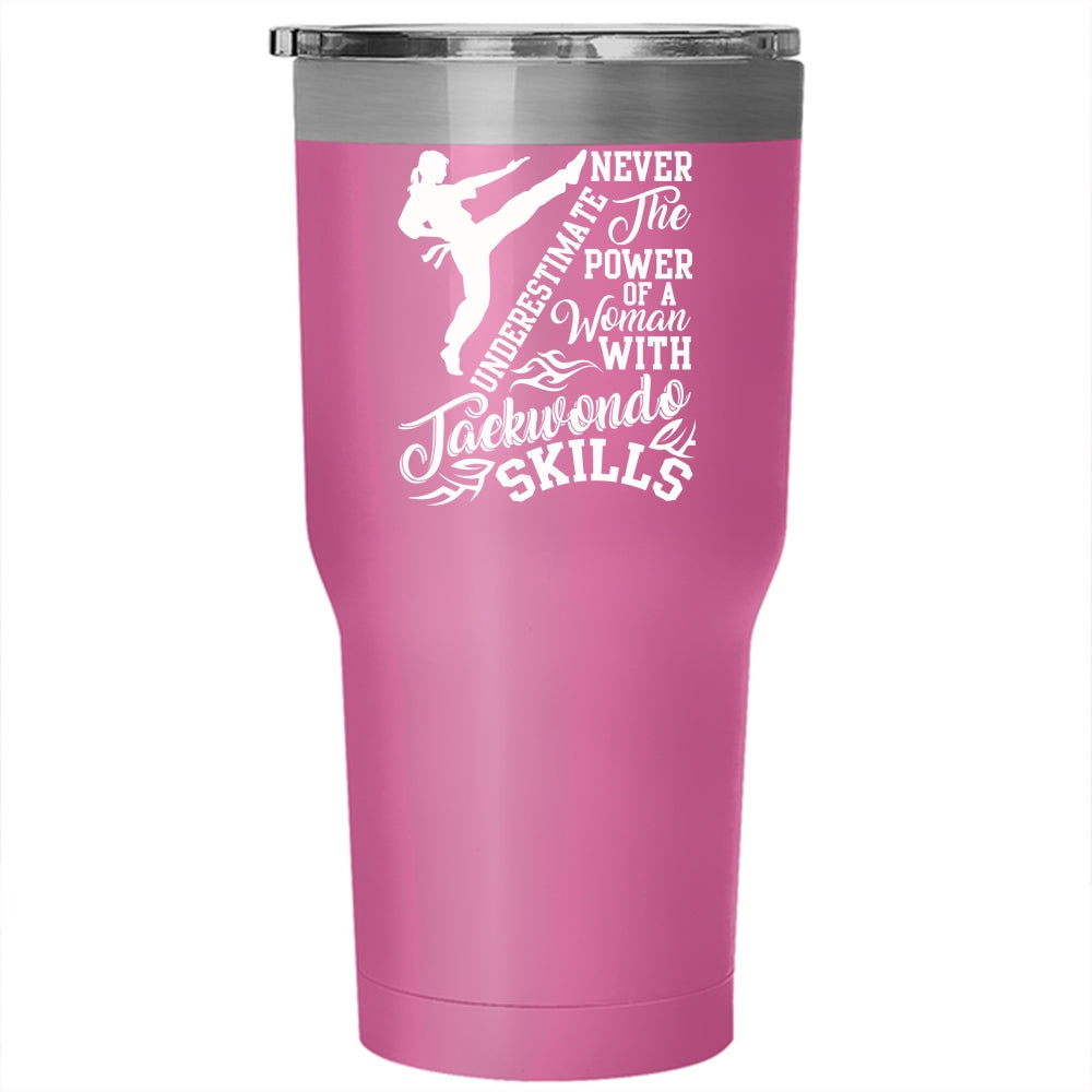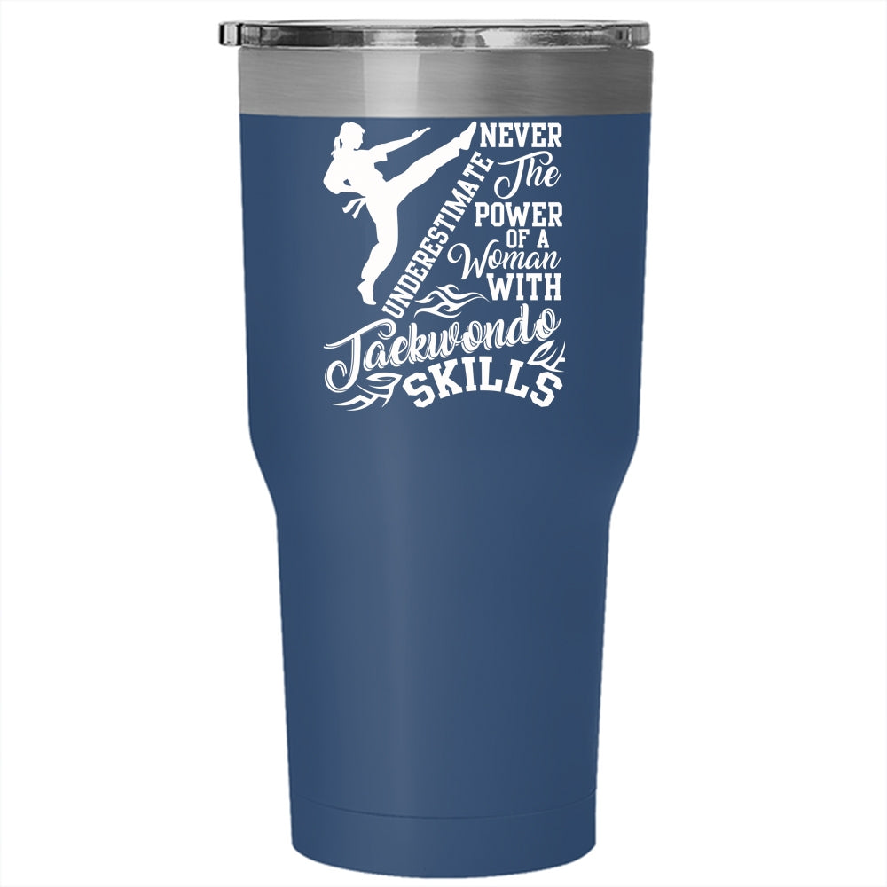 The Power Of A Woman With Taekwondo Skills Tumbler 30 oz Stainless Steel, Cool Travel Mug
