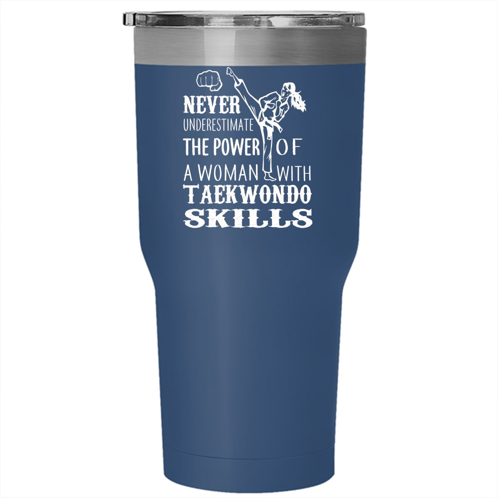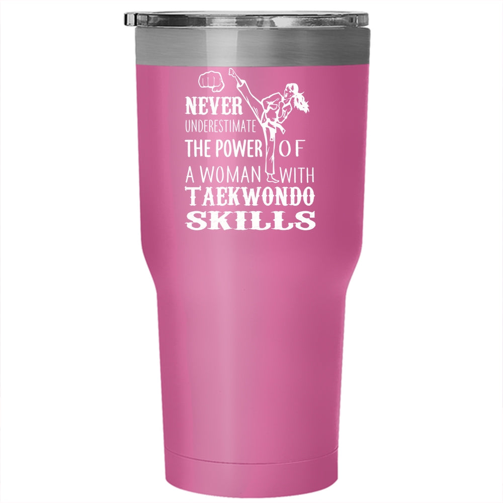 The Power Of A Woman With Taekwondo Skills Tumbler 30 oz Stainless Steel, Funny Girls Travel Mug