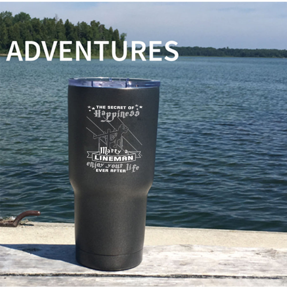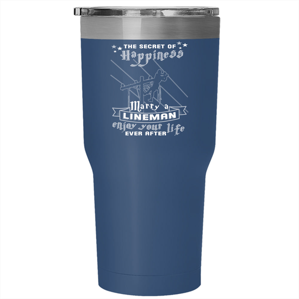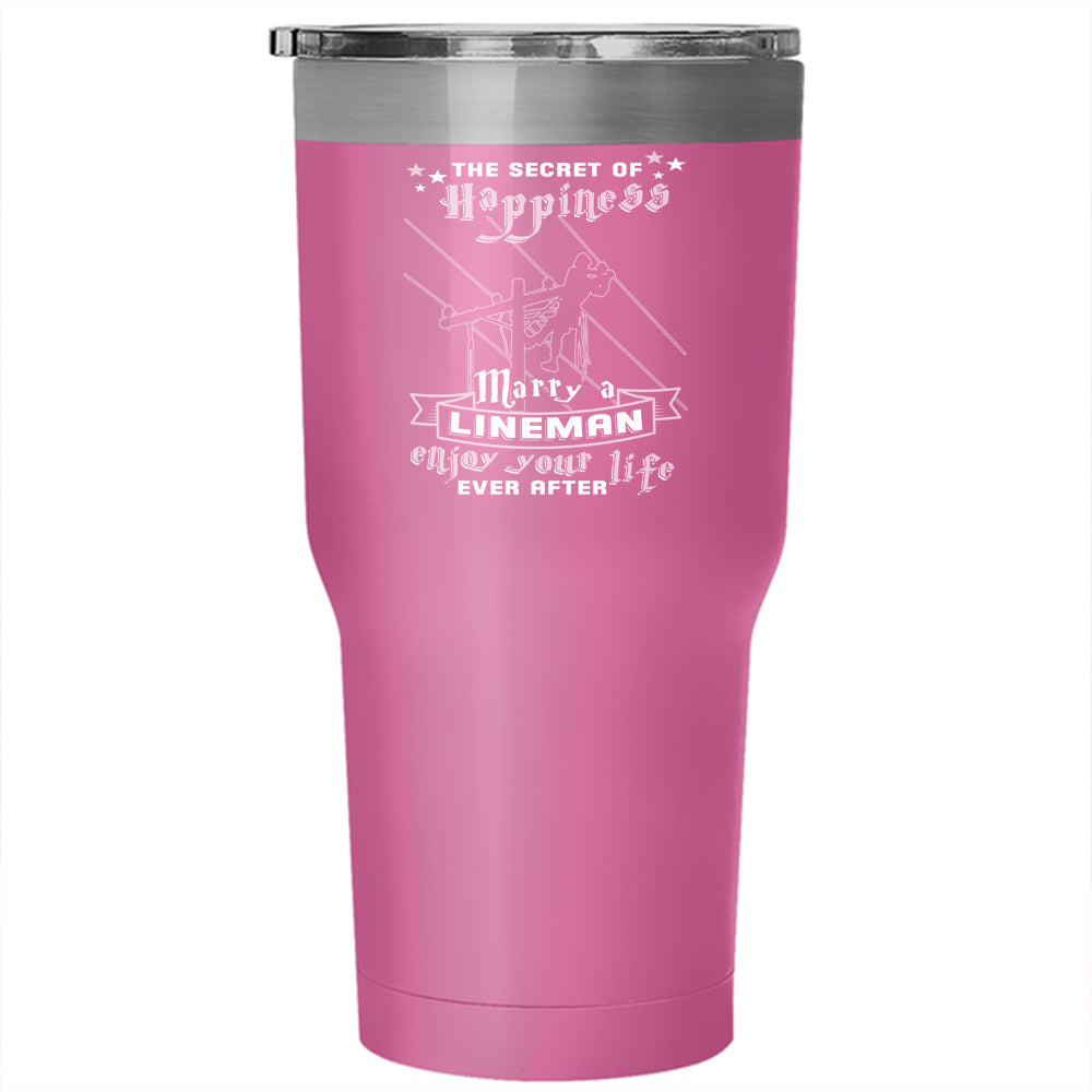 The Secret Of Happiness Marry A Lineman Tumbler 30 oz Stainless Steel, Enjoy Your Life Travel Mug